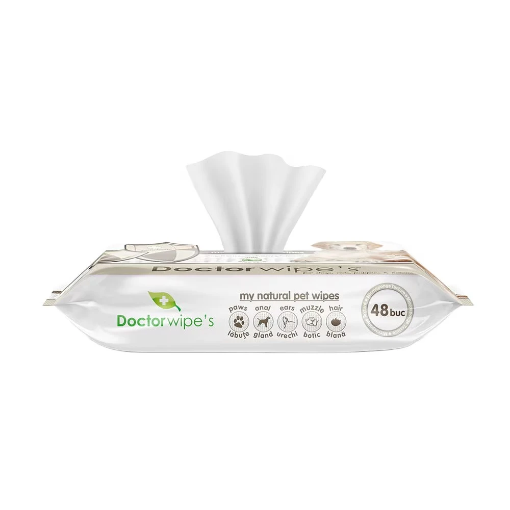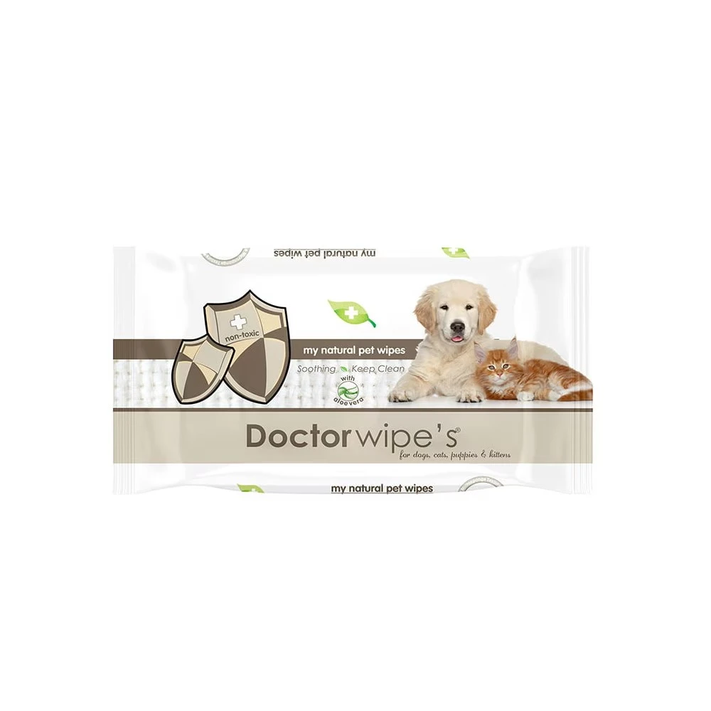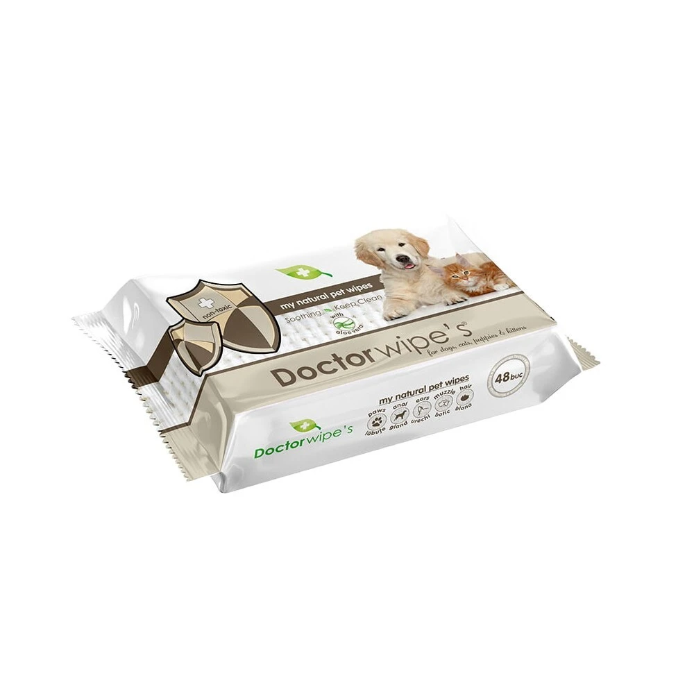 Doctor Wipes My Natural Pet Wipes with Aloe Vera for Dogs, Cats, Puppies and Kittens; Non-Toxic; 48pcs