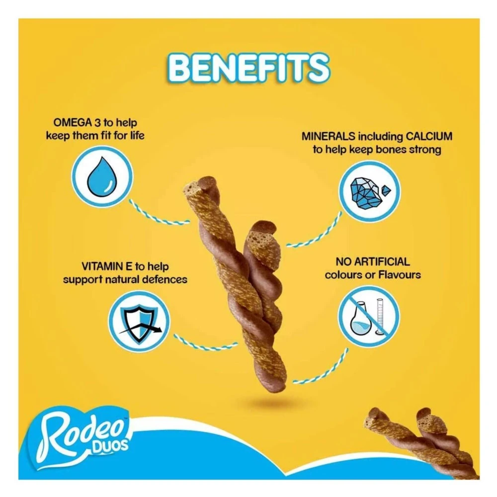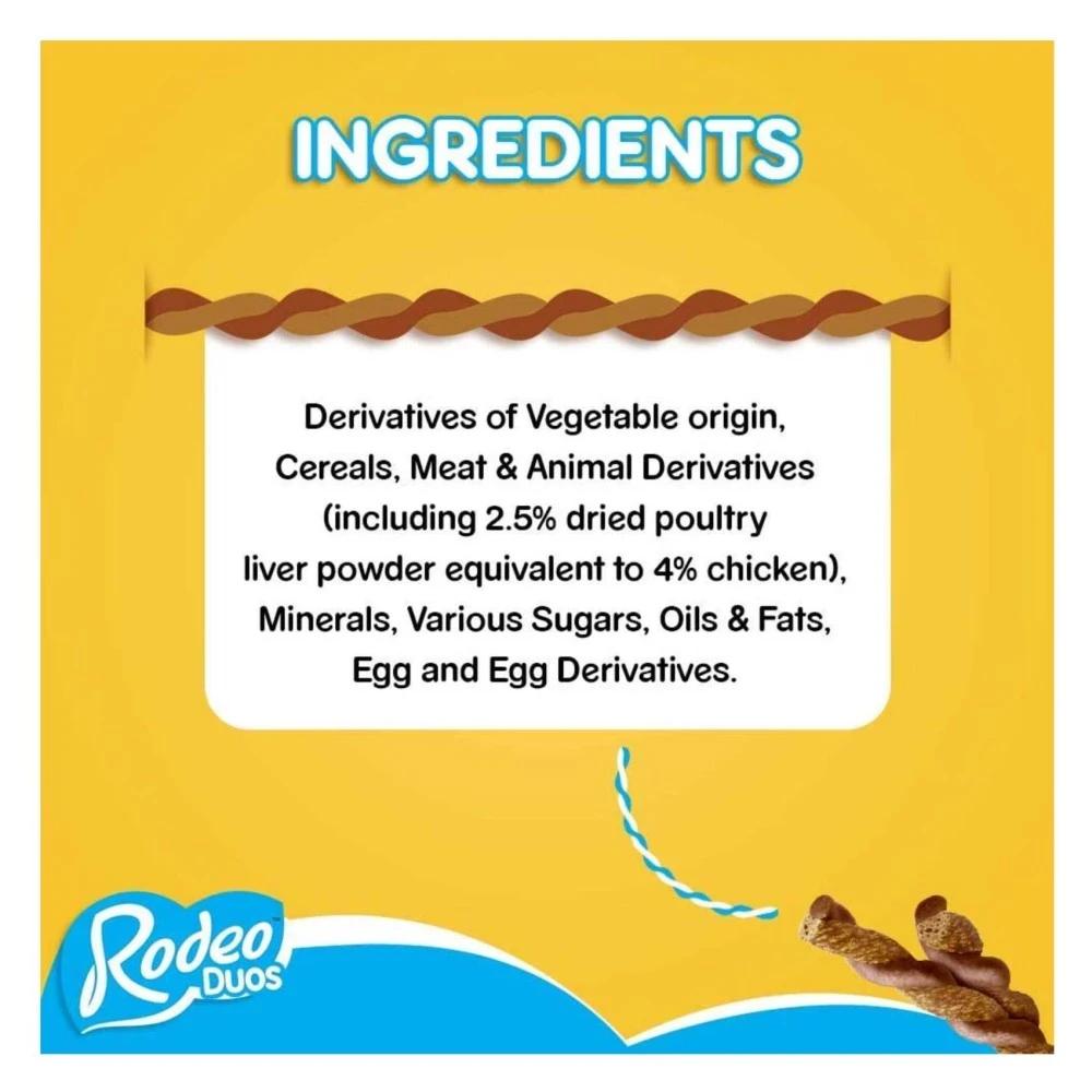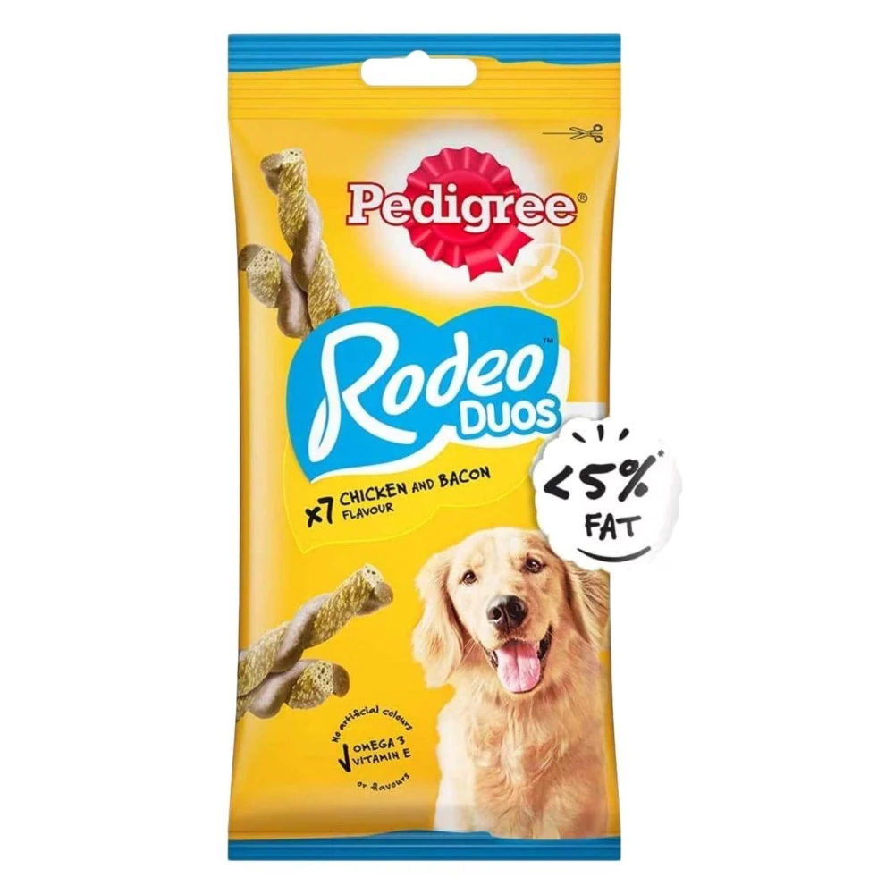 - Pedigree Rodeo Duos are infused with a mouth-watering chicken flavour that dogs love, making treat time enjoyable