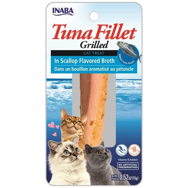 Inaba Ciao Grilled Tuna Fillet is an all natural cat treat made from hand-cut portions of responsible harvested tuna that has been lightly grilled and packed in savory scallop broth for an irresistible taste your cat will love! Product of Thailand.