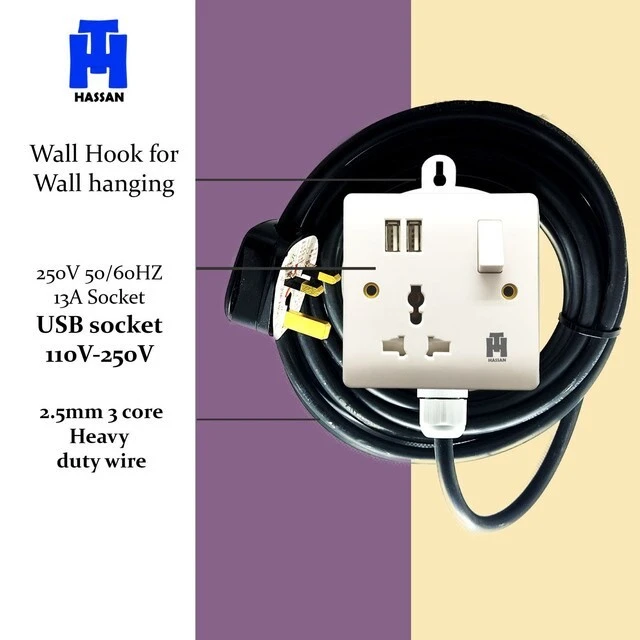 • SAFETY FIRST:- Choosing the right type of extension cord is important to ensure electrical safety. The Hassan Single Socket USB Universal Power Outlet Extension Cord is made with high quality materials and is UL listed, so you can be sure it is safe to use