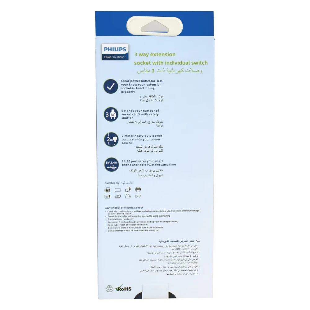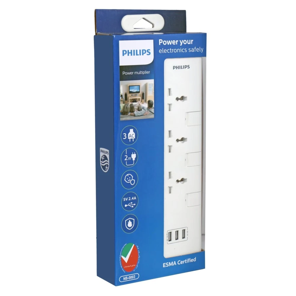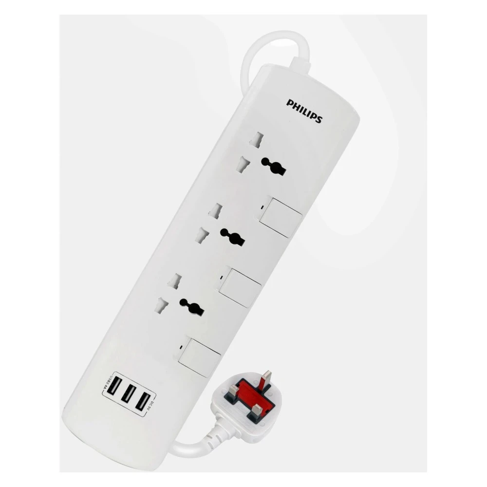 Philips Power Multiplier Extension Socket With 3 USB Ports White 3W