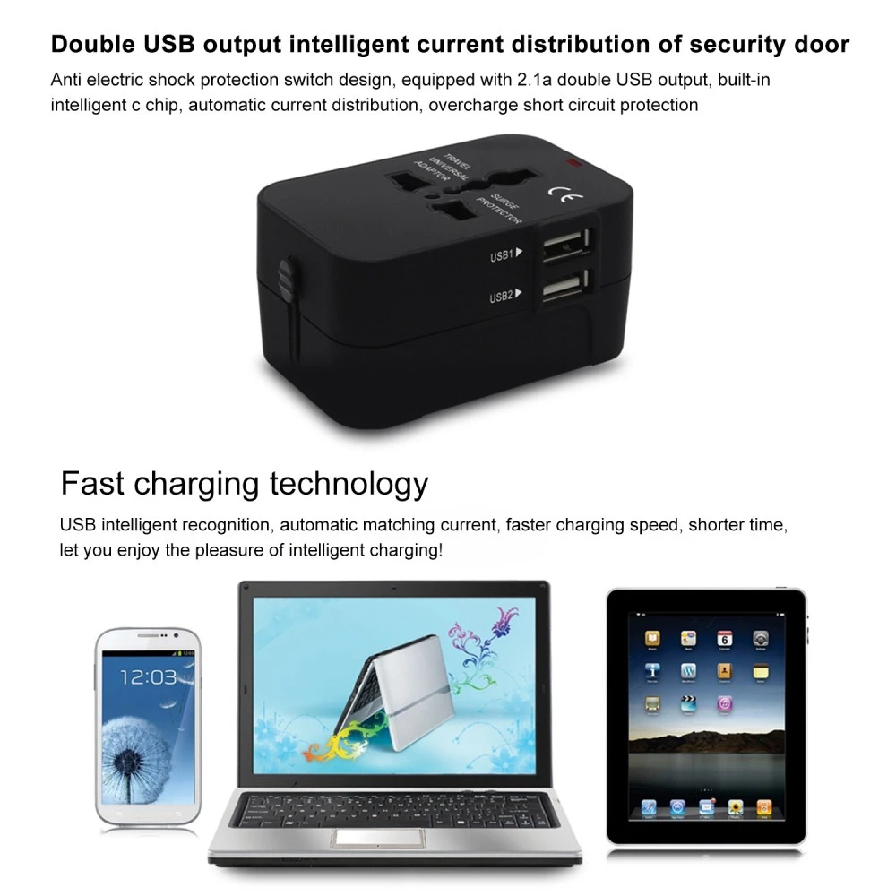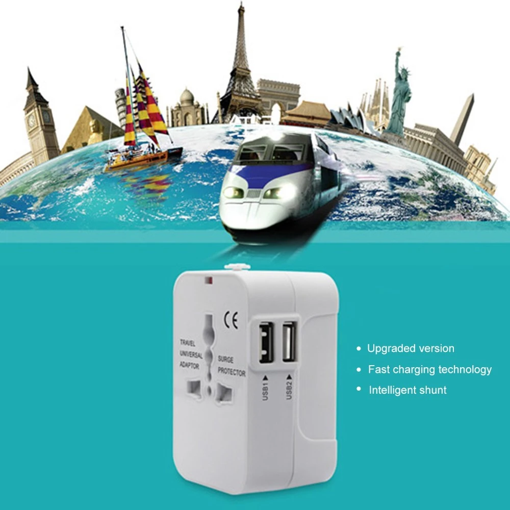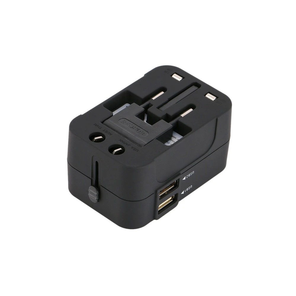 Generic-Universal Worldwide All in One Phone Charger Travel Wall AC Power Plug Adapter with Dual USB Charging Ports for USA EU UK AU