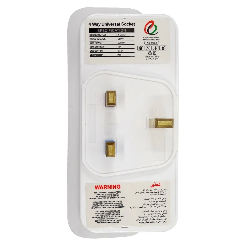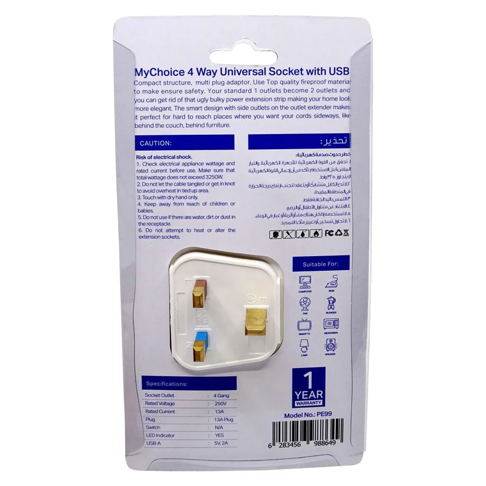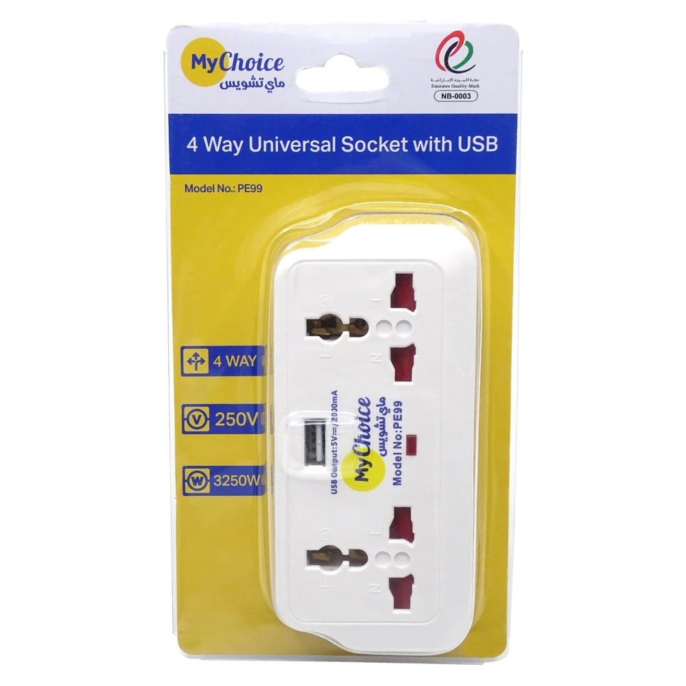 MyChoice 4-Way Universal Socket Adapter with USB 12W