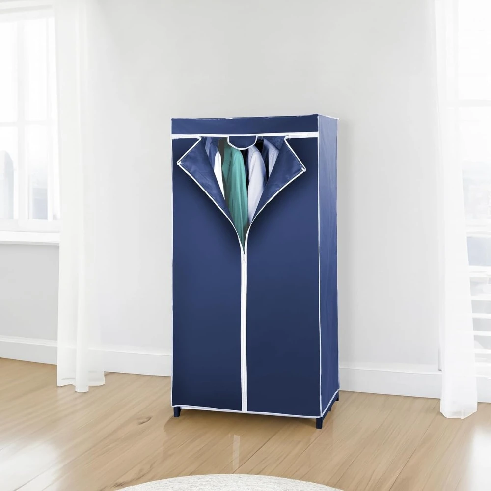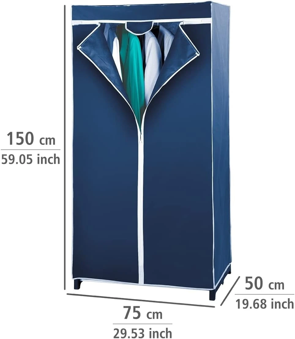 FITTO Wardrobe Storage Organizer – Breathable Nonwoven Fabric Closet with Zip Closure, Sturdy Metal Frame, Space-Saving Design for Dust-Free Textile Storage, Blue, 75 x 150 x 50 cm