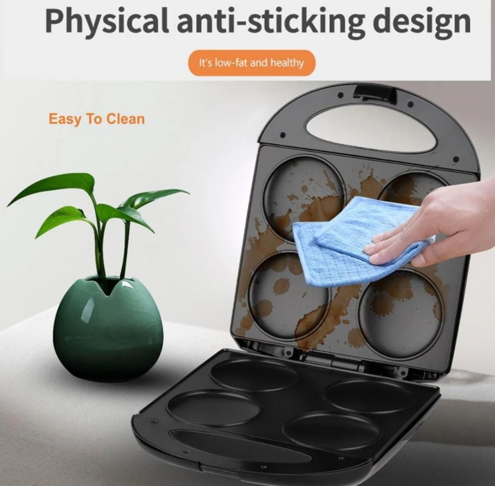 • 4-Slot Non-Stick Griddle – Cook up to four pancakes or fried eggs at once with this spacious, non-stick griddle, perfect for breakfast prep and easy flipping.