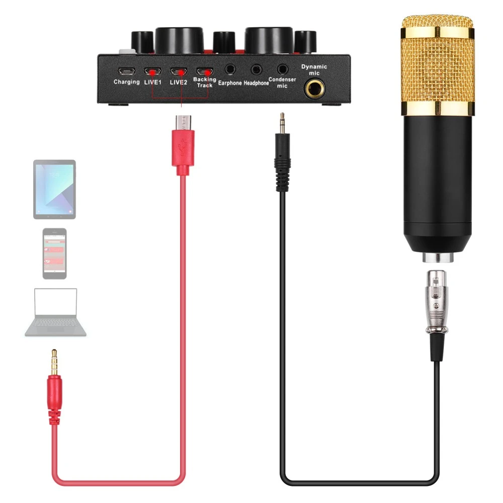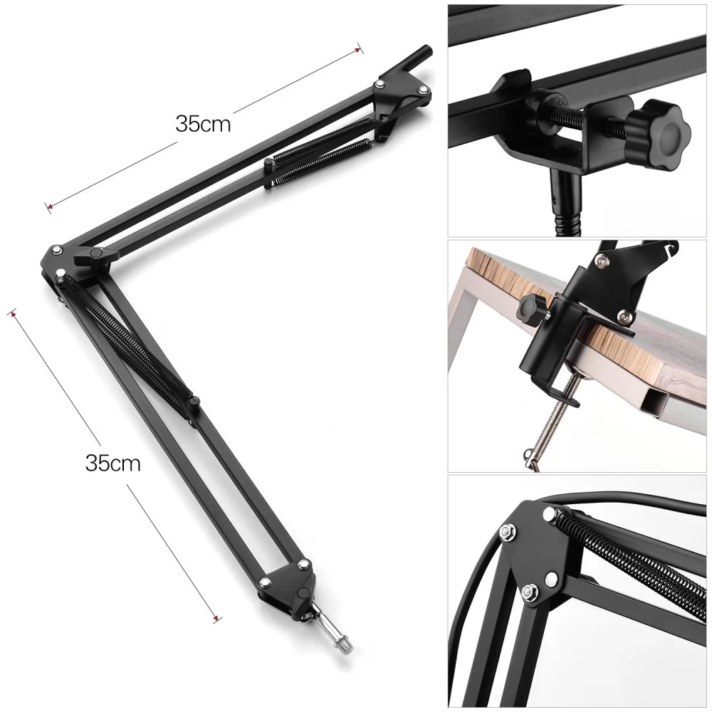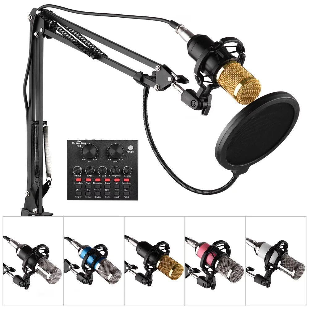 Generic-Professional Broadcasting Studio Recording Condenser Microphone Kit with External Sound Card + Mic Windscreen + Shock Mount + Adjustable Suspension Scissor Arm Stand + Mounting Clamp + Pop Fil