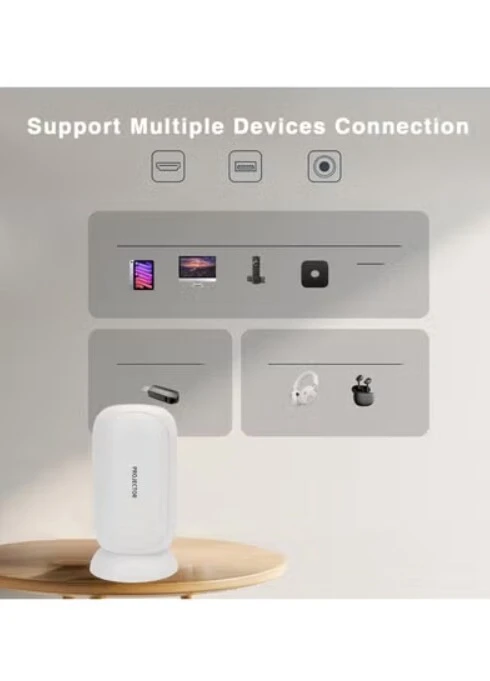 • Portable and Versatile Design: Designed for portability, this mini projector is perfect for both indoor and outdoor use. Whether you're setting up a home theater, having an outdoor movie night, or giving a presentation, the compact and lightweight design makes it easy to transport and set up anywhere