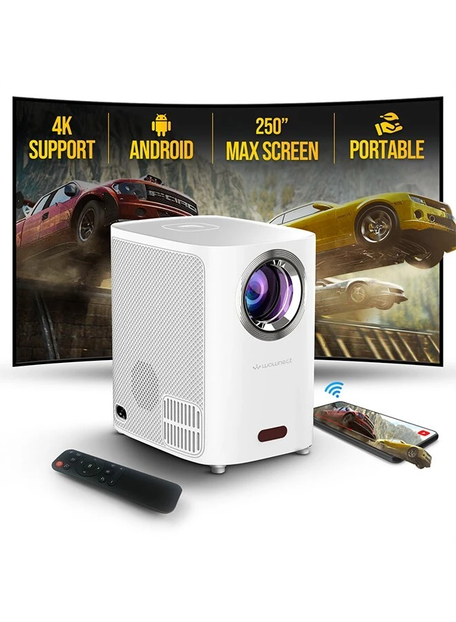 Wownect - Smart Mini Android Projector 5500 Lumens with 150" Display Built-in Dual Hi-Fi Speakers Supported 1080P (60FPS) Portable Projector 4K