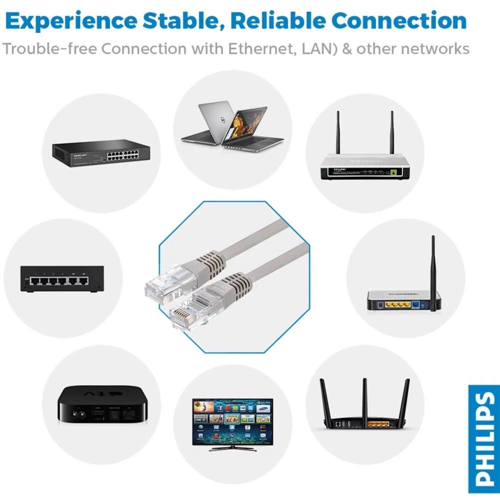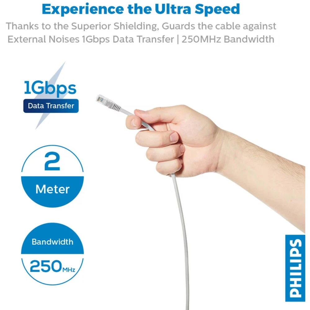 Philips Cat6 Ethernet High Speed LAN Network Cable SWN2204G/40 Grey 2m