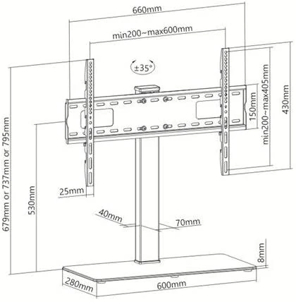 Skilltech Table Top LCD/LED TV Stand with 8.0mm/0.31in Thickness Tampered Glass Fit for 37~70in with Holding Weight Capacity 40KG (88lbs)