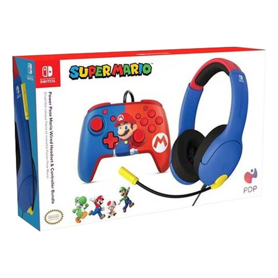 PDP Power Pose Super Mario Wired Over-Ear Headset And Controller Bundle For Nintendo Switch Multicolour