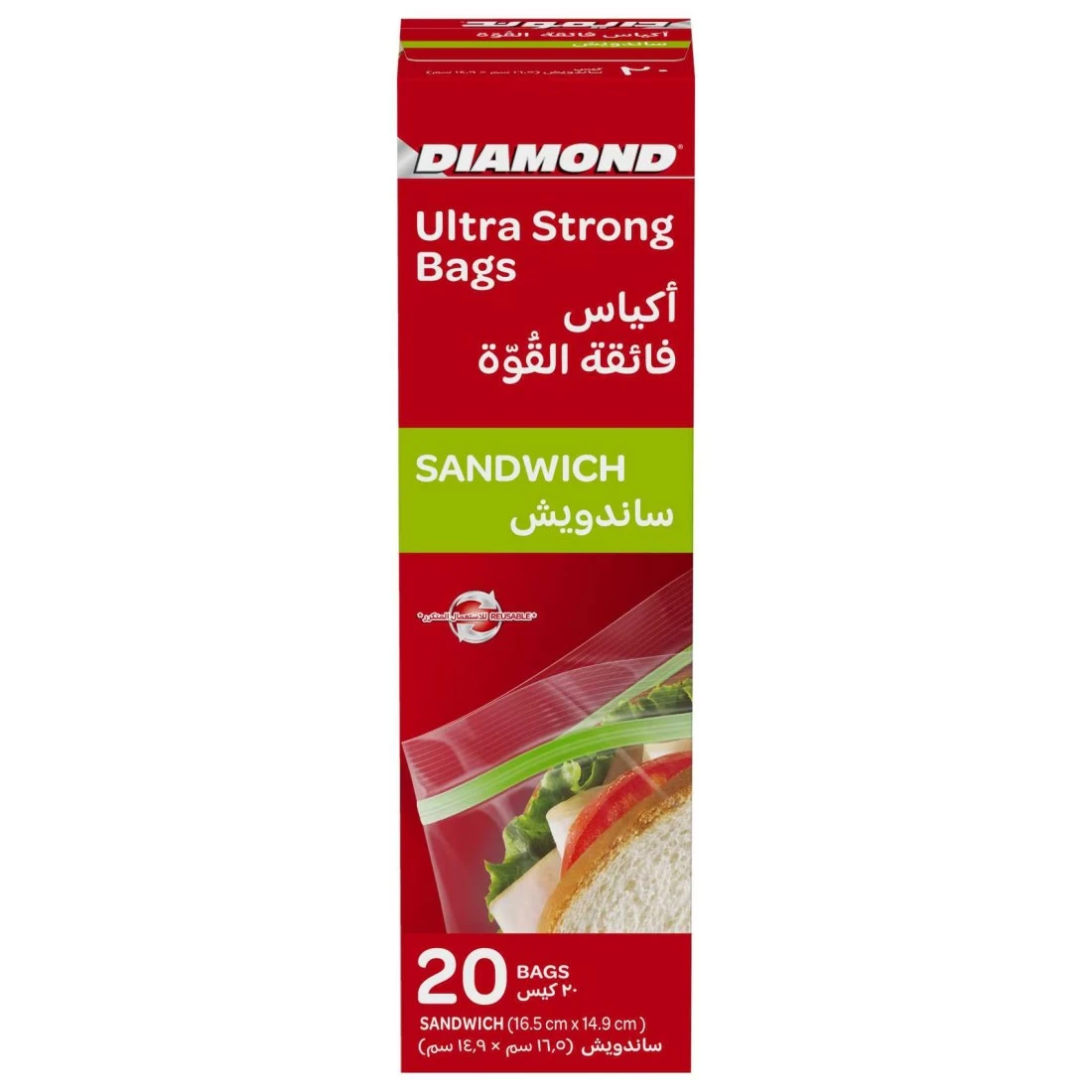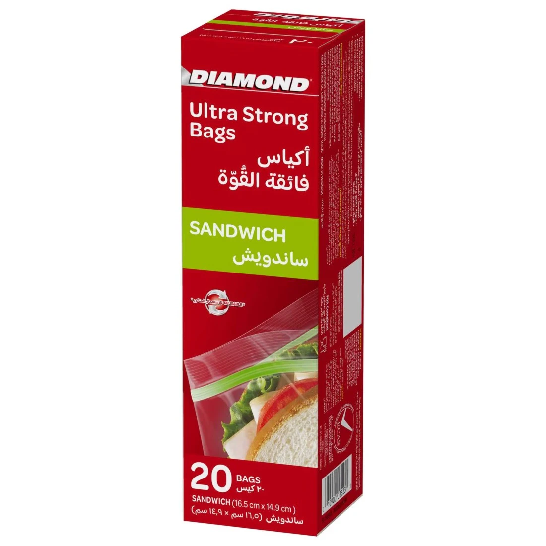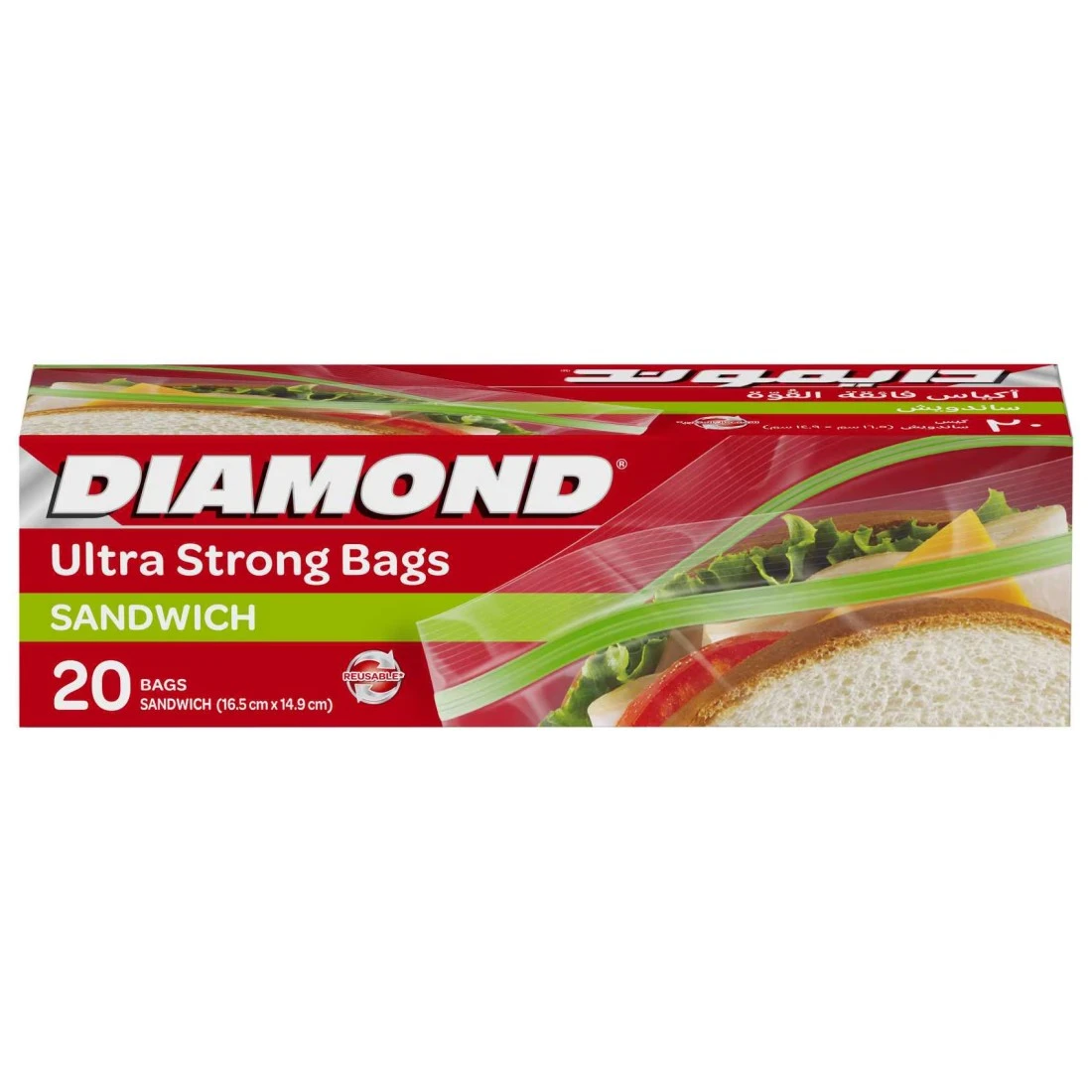 Diamond Zipper Sandwich Bags Clear 20 Bags