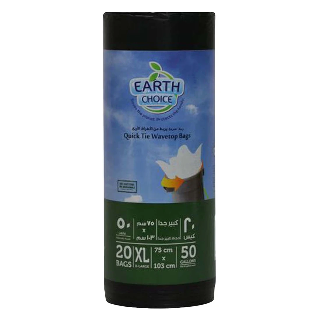 Earth Choice Quick Tie Wavetop Extra Large Black 20 Garbage Bags