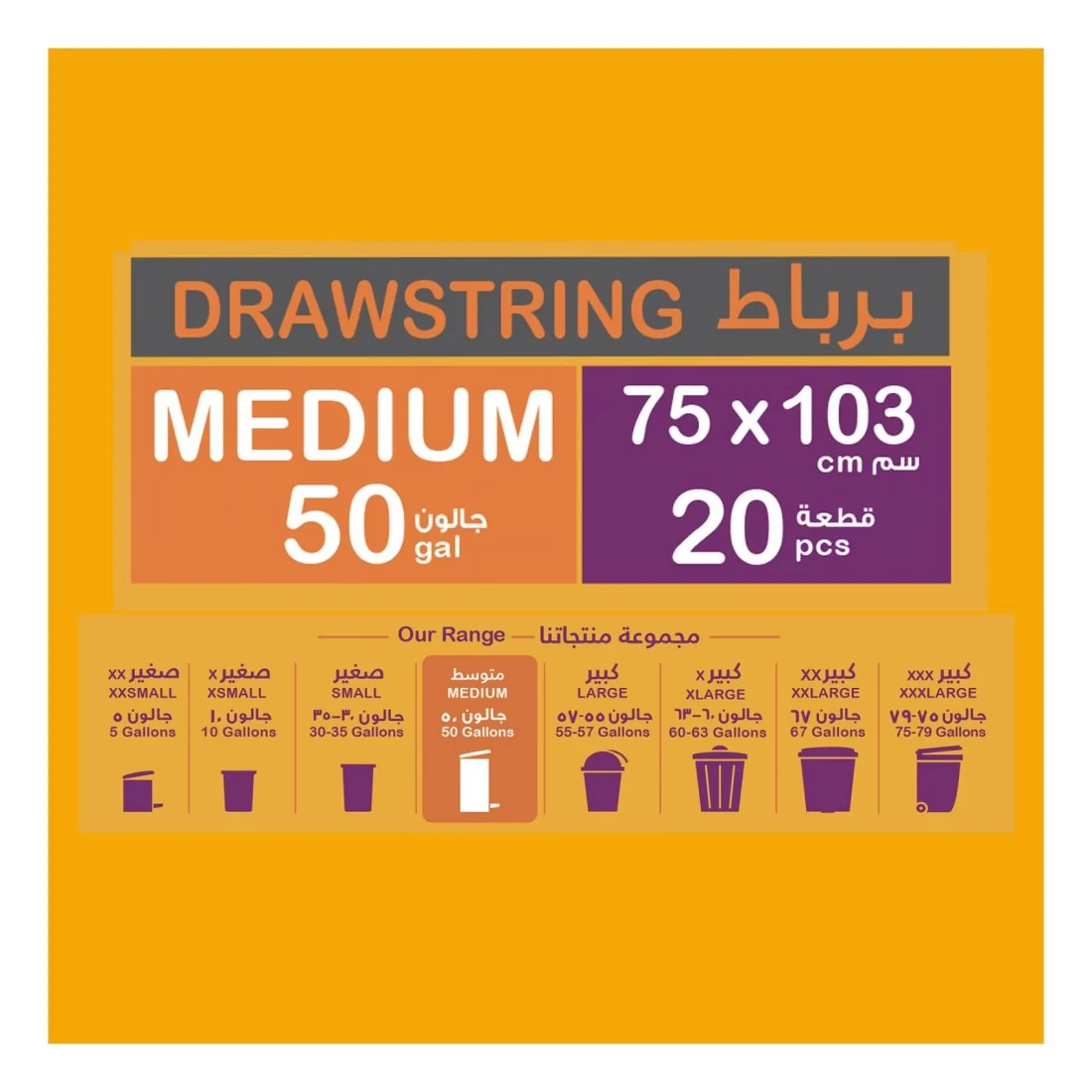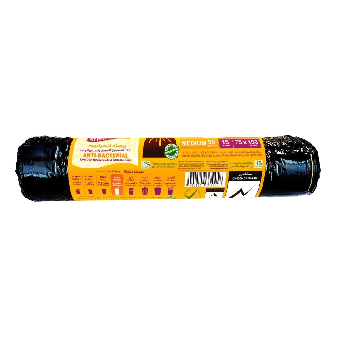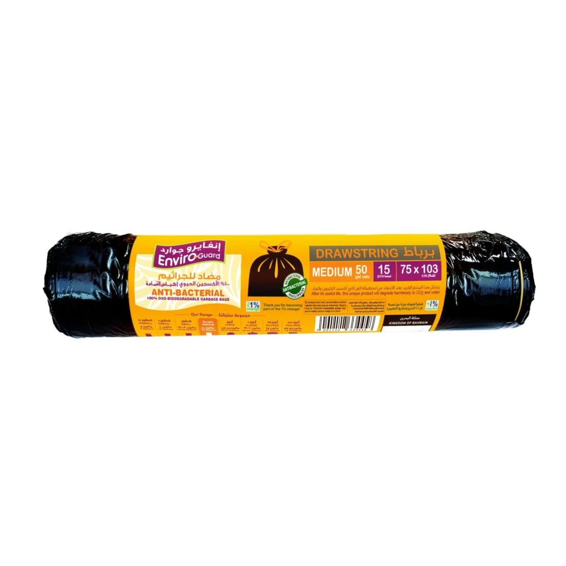The Enviro Care 50 Gallon Drawstring Medium Black 15 Garbage Bags are a durable and convenient solution for waste disposal. These medium-sized bags have a 50-gallon capacity making them perfect for use in kitchens offices and other high-traffic areas. The drawstring closure ensures that the bags stay securely closed preventing any leaks or odours from escaping. Made from high-quality materials these bags are designed to be tear-resistant and puncture-proof. The sleek black colour adds a touch of sophistication to any space. With a pack of 15 bags, you'll have plenty to last you for a while. Choose Enviro Care for all of your garbage bag needs.