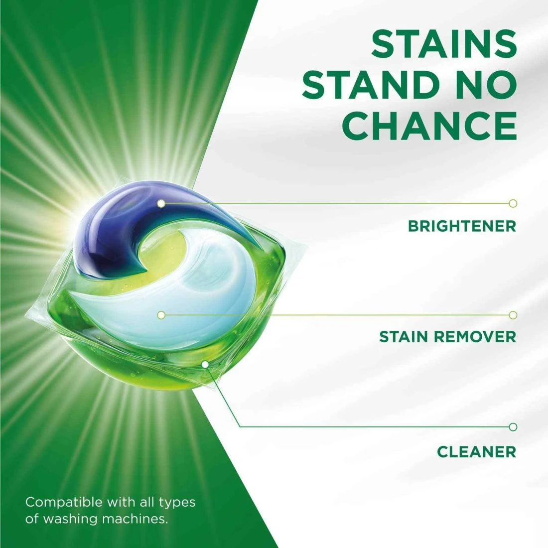 - Packing concentrated cleaning and brightening power just 1 tiny capsule is enough for getting stain-free wash from the 1st wash