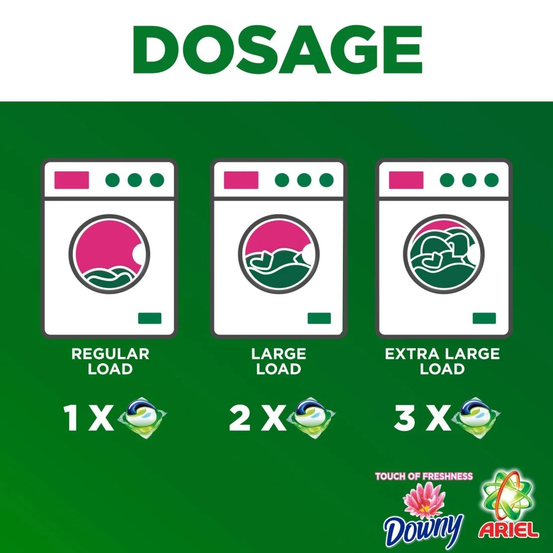 Ariel 3-In-1 Pods With Touch Of Downy Freshness Detergent Multicolour 30 Capsules are the perfect solution for all your laundry needs. These pods combine the cleaning power of Ariel detergent with the freshness of Downy fabric softener, giving you clean and fresh-smelling clothes every time. The multicolour capsules are easy to use, simply pop one into your washing machine with your laundry and let it do its magic. With 30 capsules in each pack, you'll have enough to last you for multiple loads of laundry. Not only do these Ariel pods clean and freshen your clothes, but they also help to remove tough stains and keep your colours bright. The 3-in-1 formula means that you don't need to use separate detergent and fabric softener, saving you time and money. The Touch Of Downy Freshness scent leaves your clothes smelling amazing, and the capsules are designed to dissolve completely in the wash, leaving no residue behind. With Ariel 3-In-1 Pods With Touch Of Downy Freshness Detergent Multicolour 30 Capsules, doing laundry has never been easier or more convenient. Say goodbye to measuring out detergent and fabric softener, and hello to clean, fresh-smelling clothes with minimal effort. Try these pods today and see the difference they can make in your laundry routine.