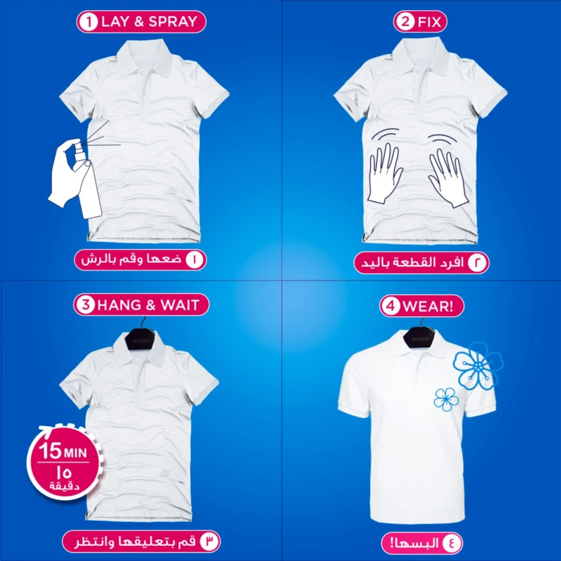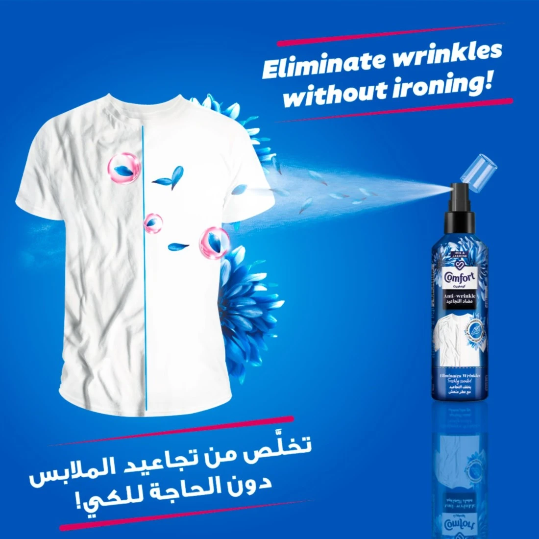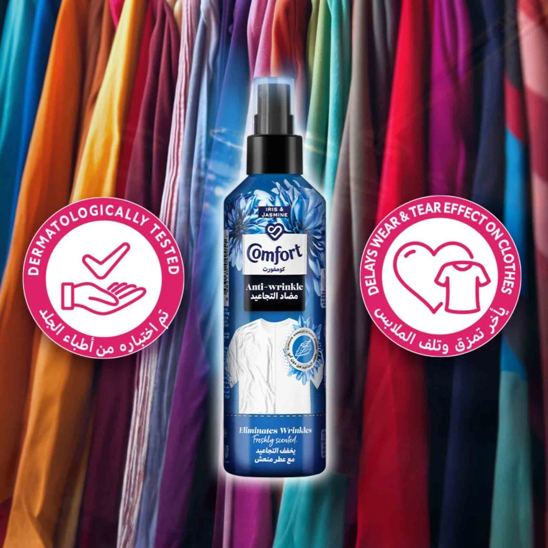 - New Comfort Anti-Wrinkle spray which is developed by experts helps to refresh your clothes without washing giving a like-washed look and allowing you to wear clothes again without ironing