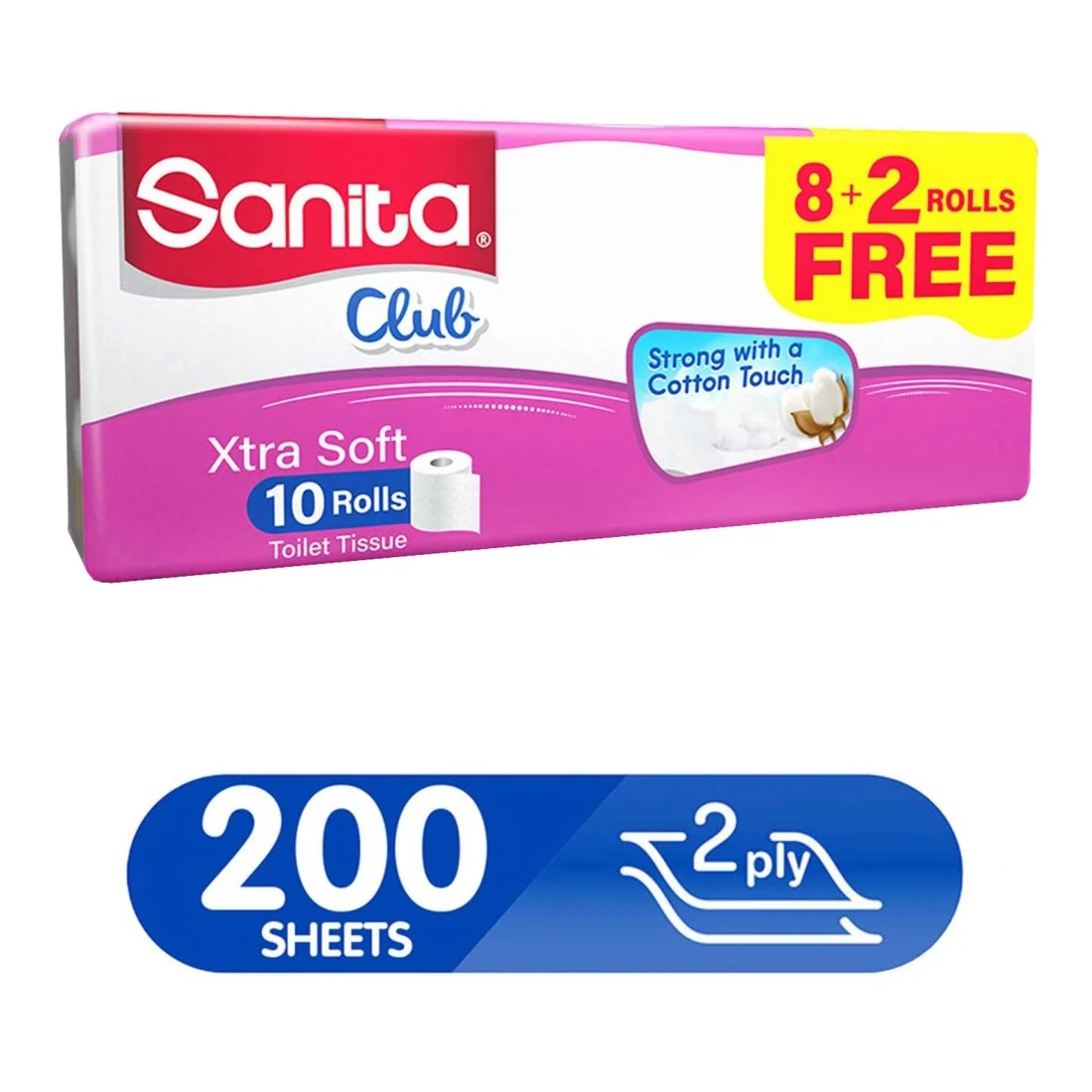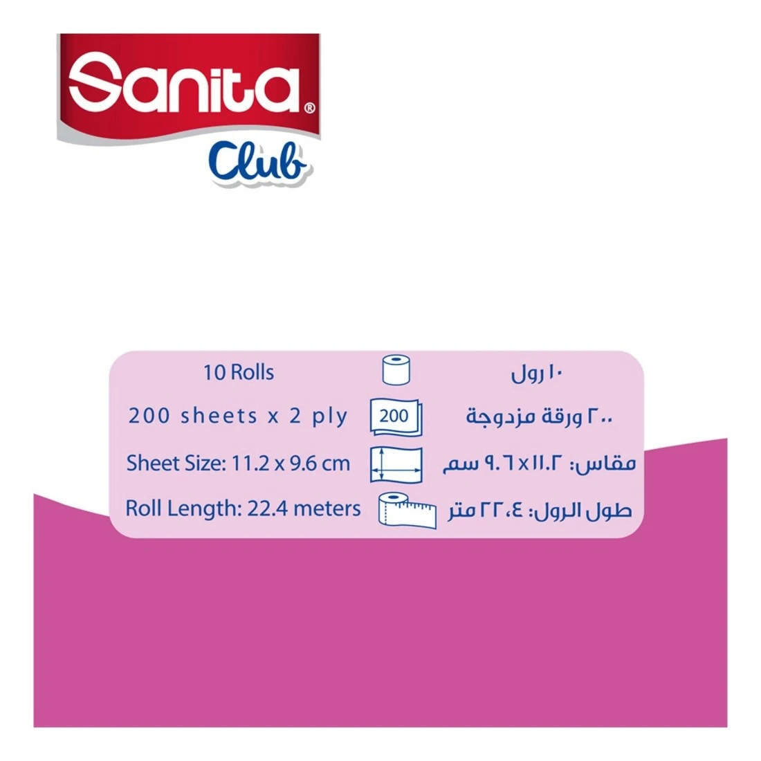 Sanita Club Extra Soft Toilet Paper Rolls 2 Ply 200 Sheet 11.2x9.6cm 22.4m 10 Rolls