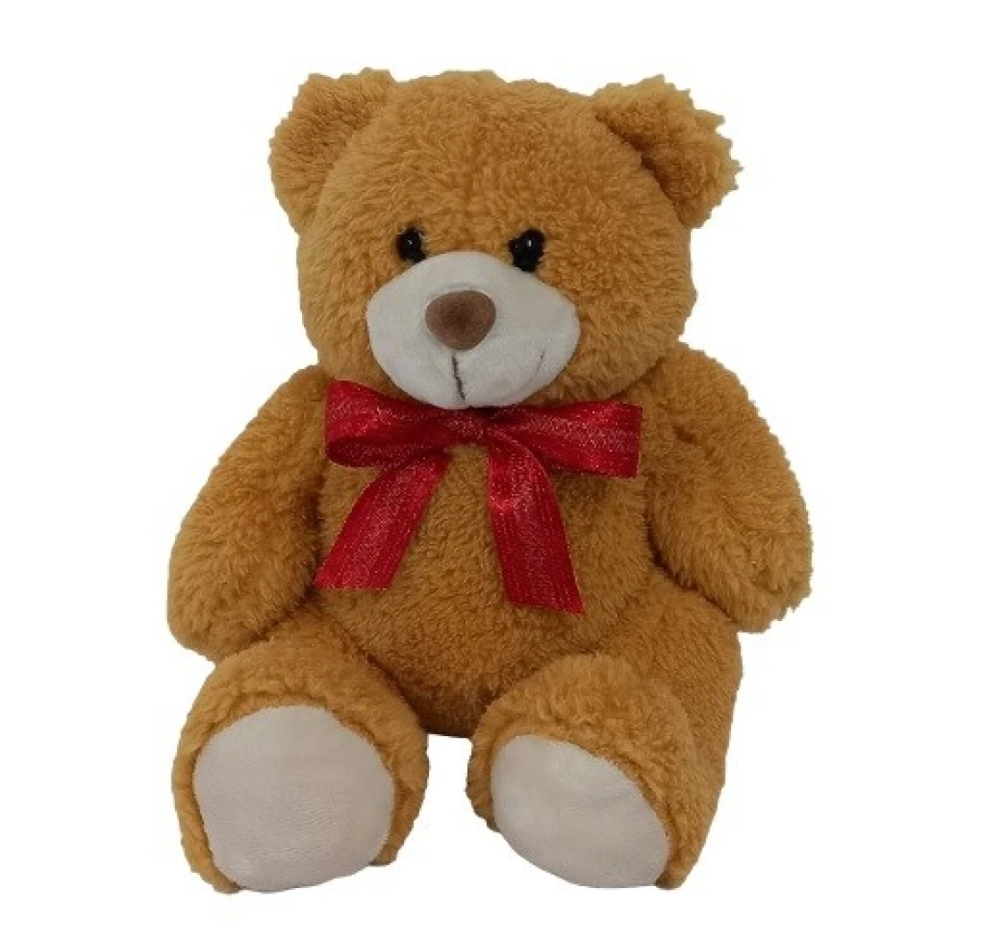 Plush Teddy Golden Brown with Red Ribbon 15cm