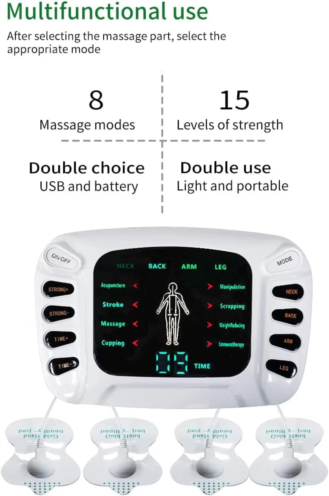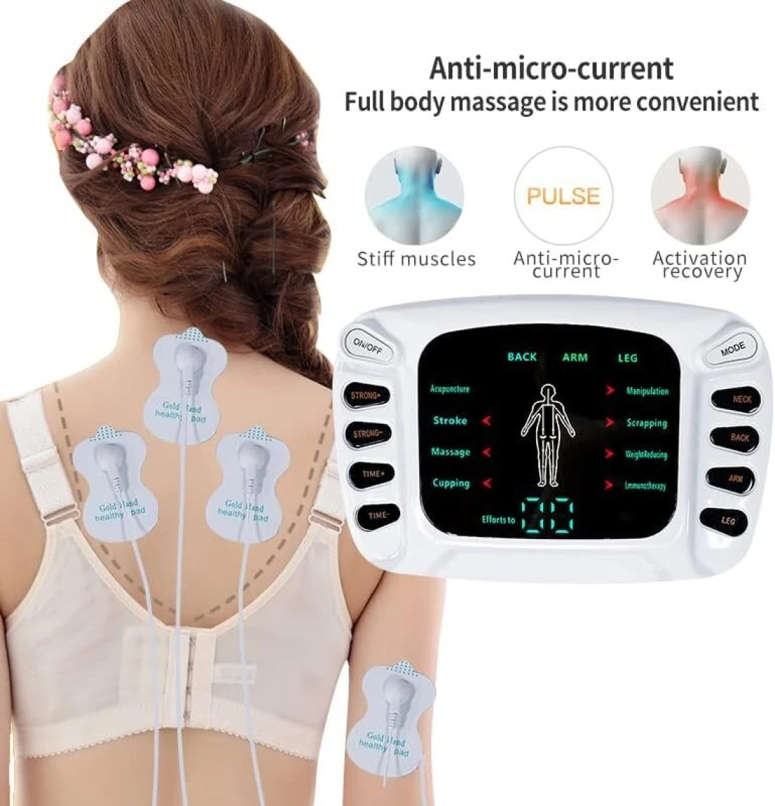 Choose from multiple modes and adjustable intensity levels to customize your treatment for neck, back, shoulder pain, and muscle tension.