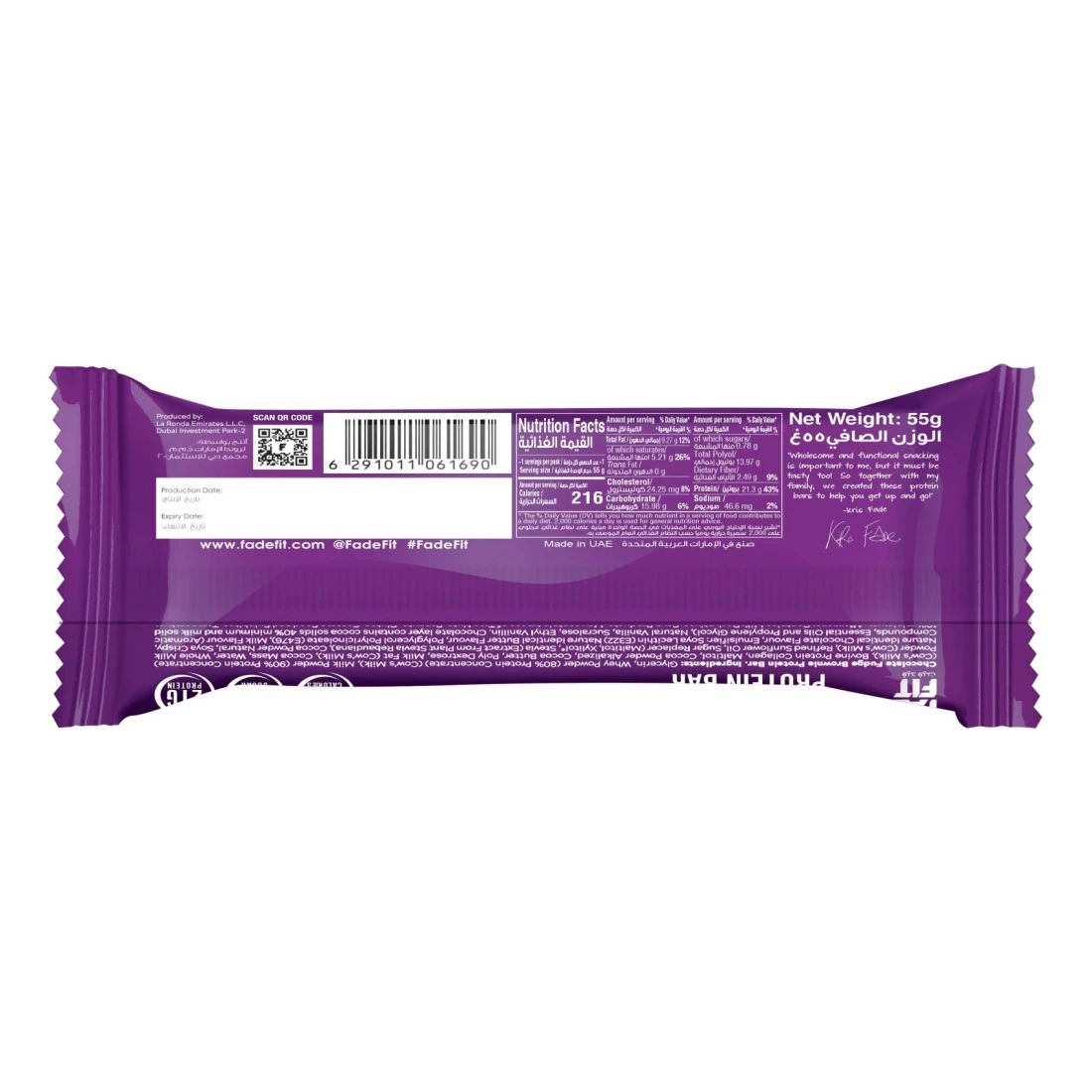 Fade Fit Chocolate Fudge Brownie Protein Bar, 55g