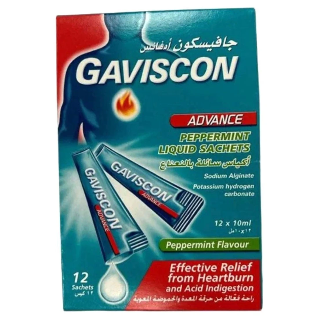Gaviscon Advance Heartburn Relief Liquid Sachets, Peppermint Flavour, 12 Sachets, 10ml