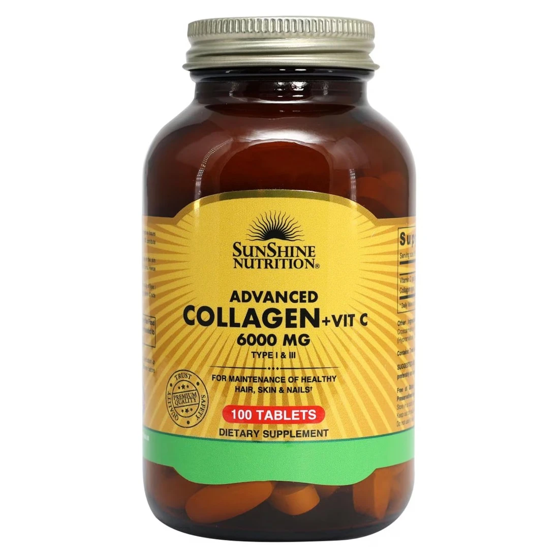 Sunshine Nutrition Advanced Collagen Plus Vitamin C 6000mg 100 Tablets