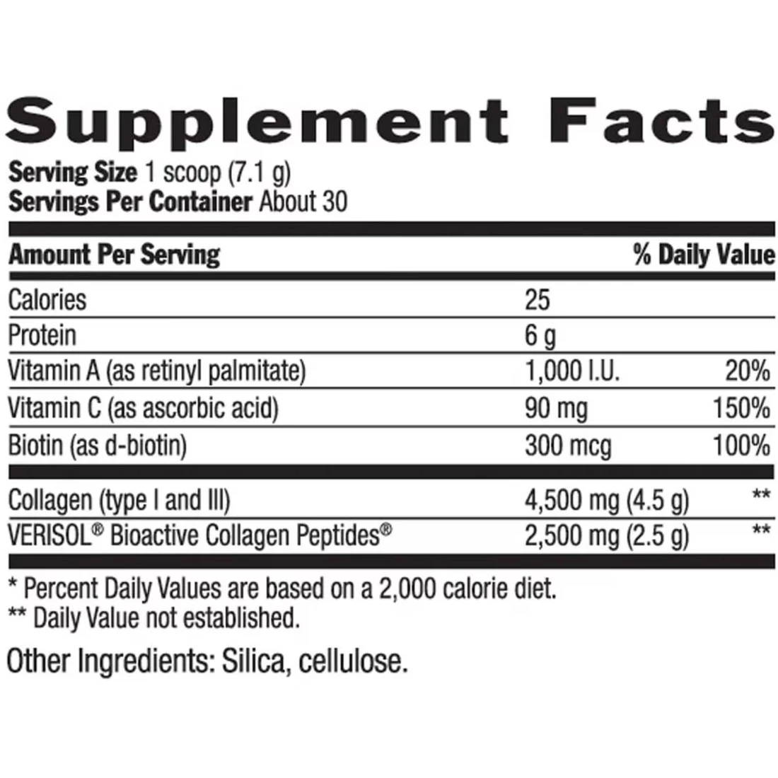 - High potency formula has 7000 mg of collagen type i and iii plus vitamin a c and biotin