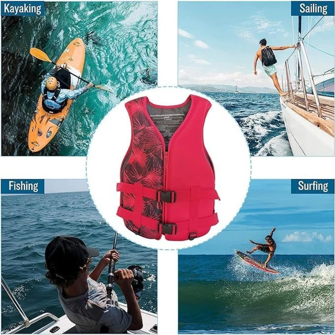 Life jacket suitable for water Skiing, Boating, Surfing, Sailing, Wakeboarding, Body boarding, Windsurfing, Fishing Ski, kayaking, etc.