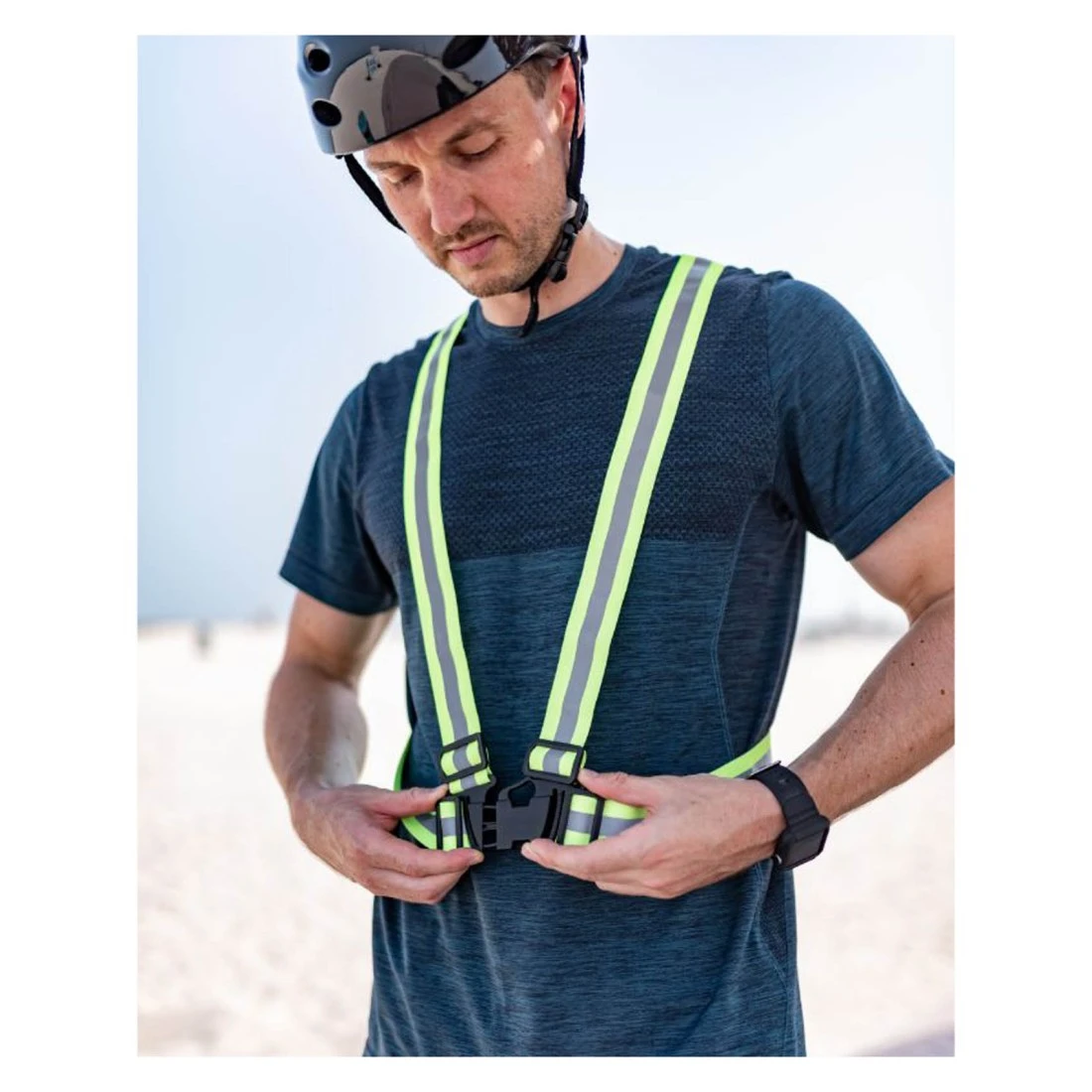 - Bright and wide reflective strips aid your recognition at night and in dark environments