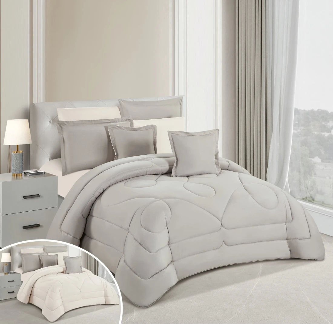 STARGOLD Microfiber Solid Comforter 8 Pieces Set Fitted Sheet, Pillow Sham, Pillow Case, Cushion Comforter 260X240 CM King Size Mattress
