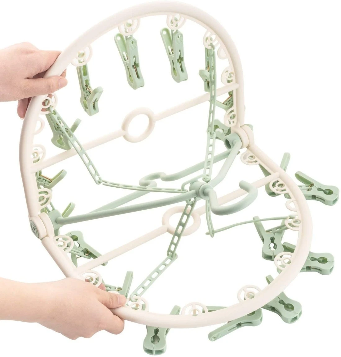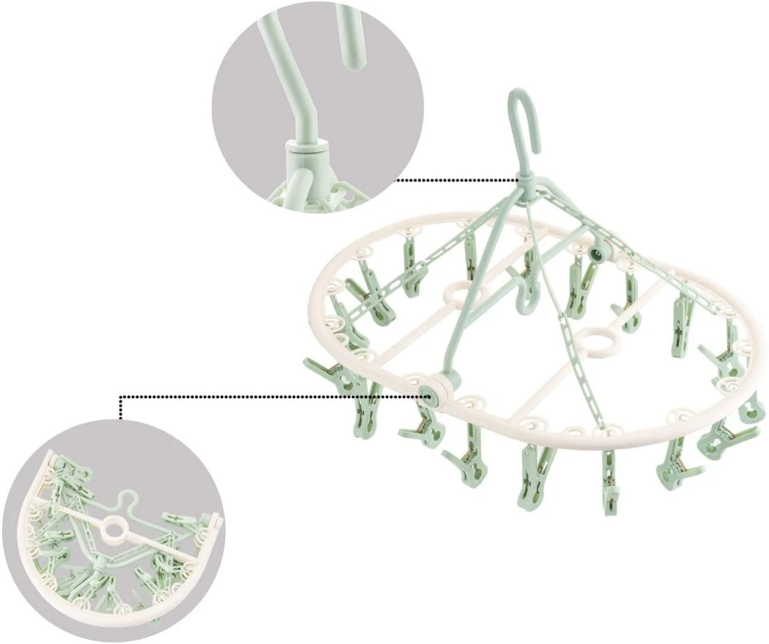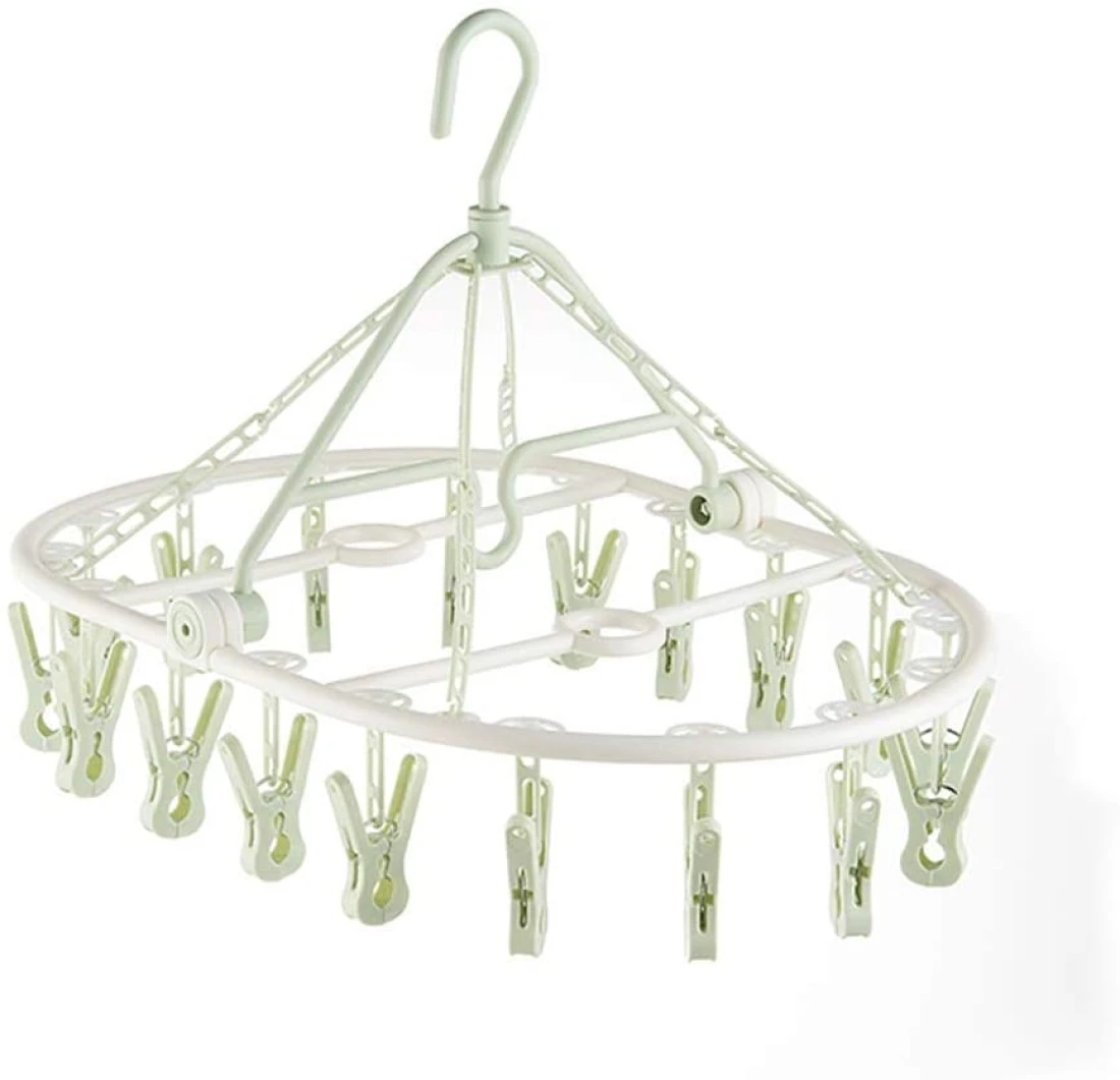 Aiwanto Laundry Hanger Drying Rack - Foldable Clip and Drip Hanger with 18 Clips, Rotatable Clothes Drying Rack, Sock Hanger (Green)