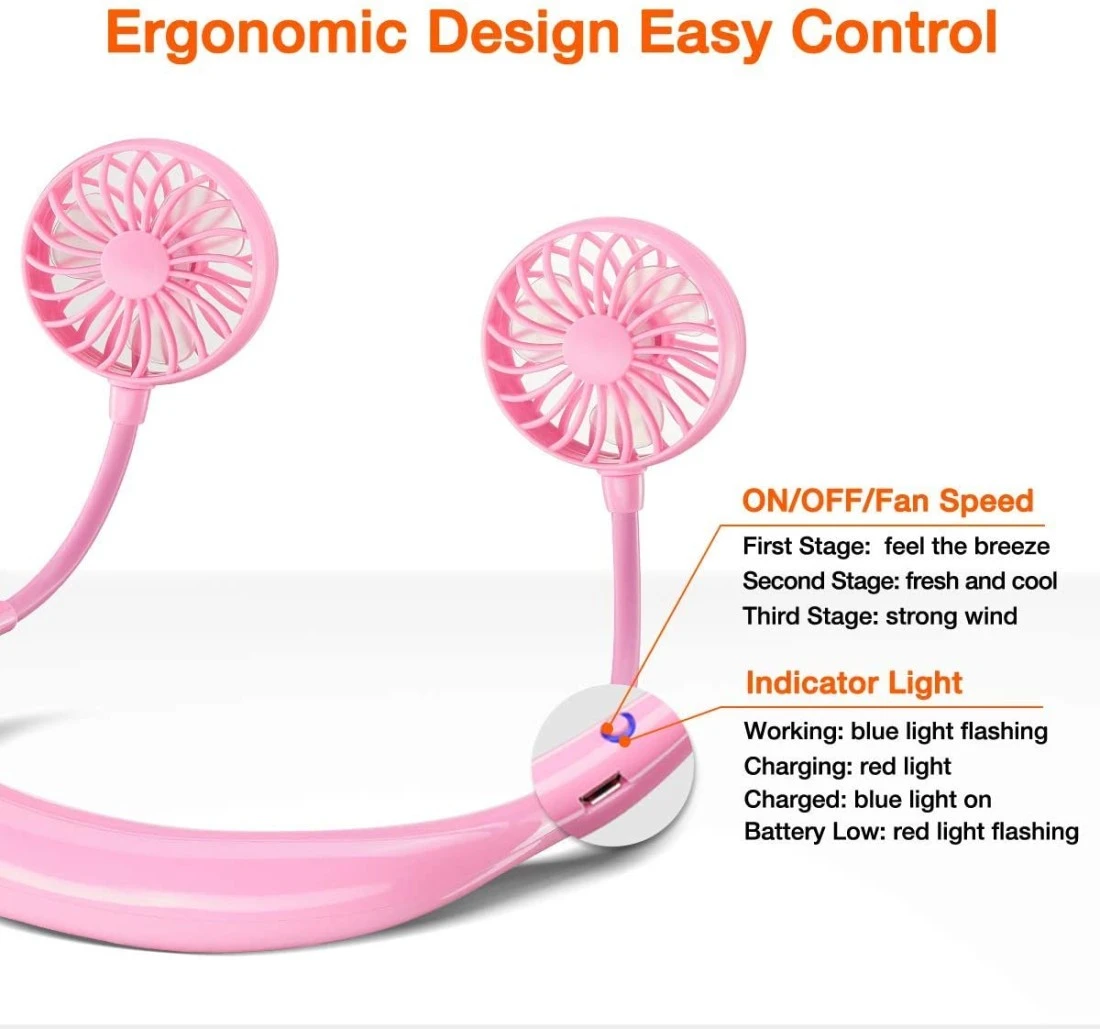 Aiwanto Neck Fan Hand Free Neck Fan Design Sports Fan Outdoor Travel Fan Personal Fan