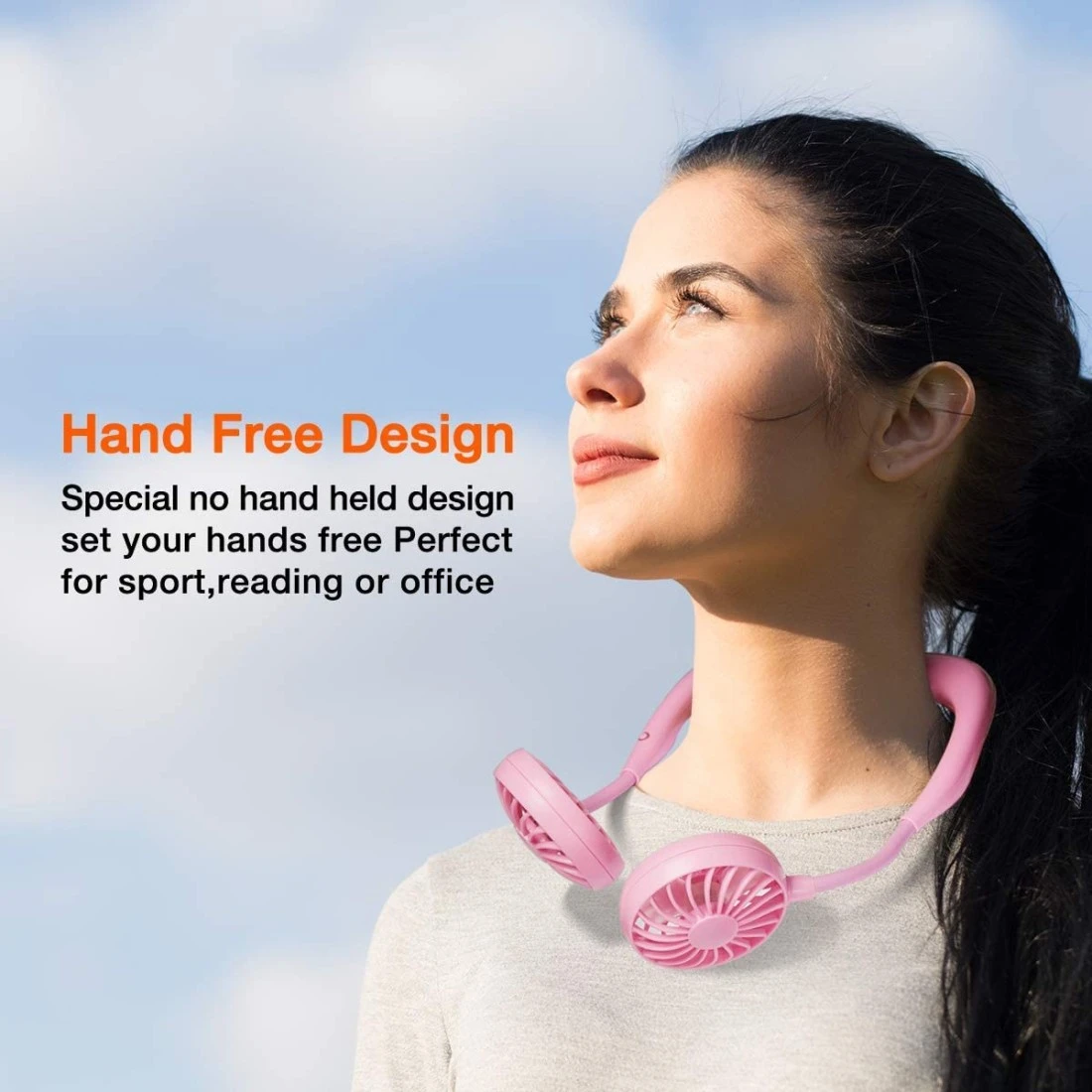HAND FREE & LIGHTWEIGHT: New wearable neckband design free your hand, made of high quality ABS material and silicone, lightweight and comfortable, powerful as both a stand-alone fan on desk or around your neck.