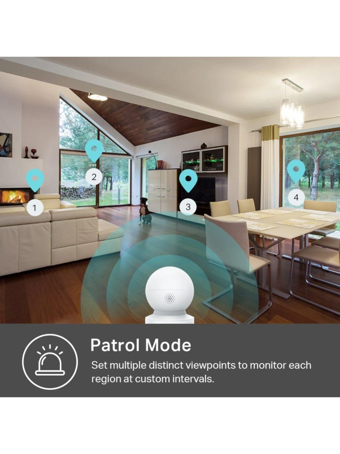 With 360° rotational and 118° vertical views, the pan tilt camera can monitor every angle of any room