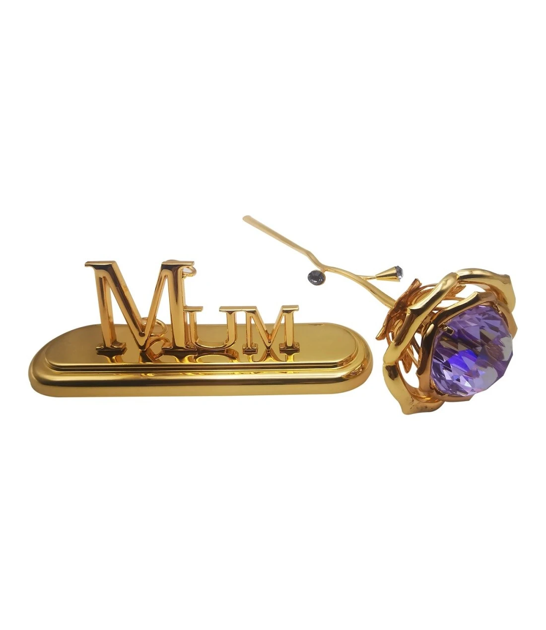 24K Gold Plated Rose Artificial Flowers Gold Dipped Rose with MUM Sign Stand