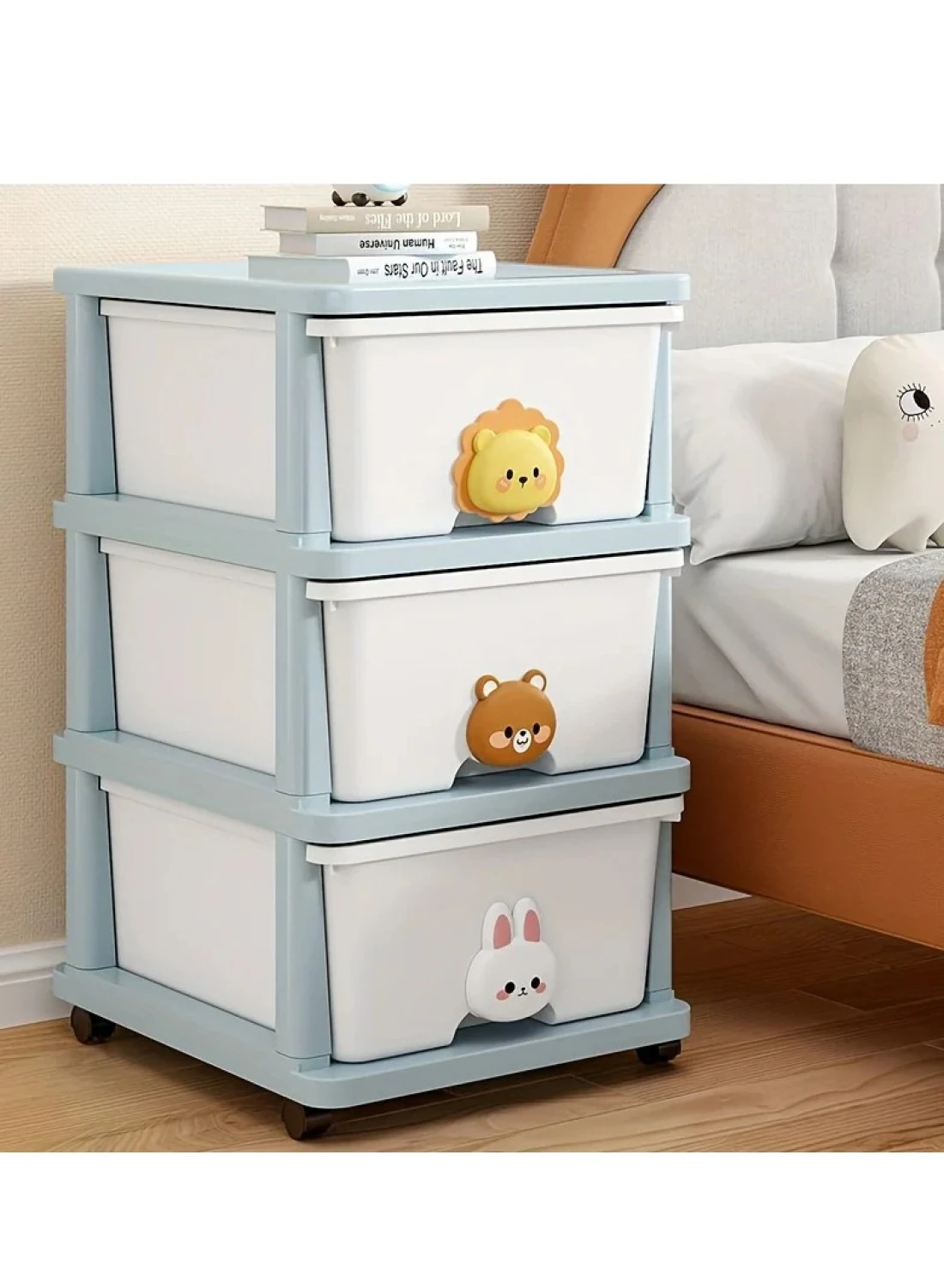 Cozy Nest 3-Layer Children's Toy Plastic Rolling Drawer Clothes Storage Box Organizer With Wheels For Office Kitchen Container Bathroom Living or Playroom Study