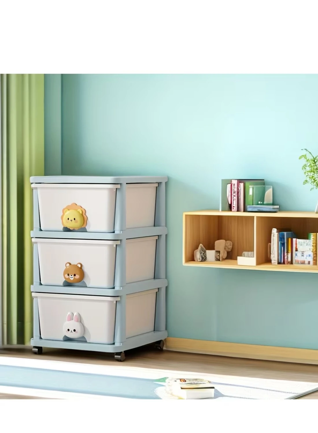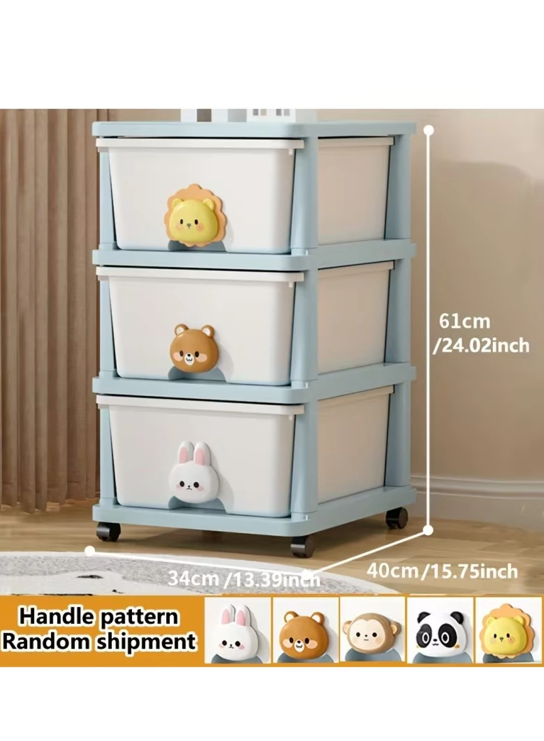 Item Weight: 4 Kilograms, Size: 3-Drawer Cabinet (L34, W40, H61), Color: Blue and White, Material: Plastic, Item Package Quantity: 1, Included components 3-layer Children's Toy Plastic Rolling Drawer and 4 Wheels
