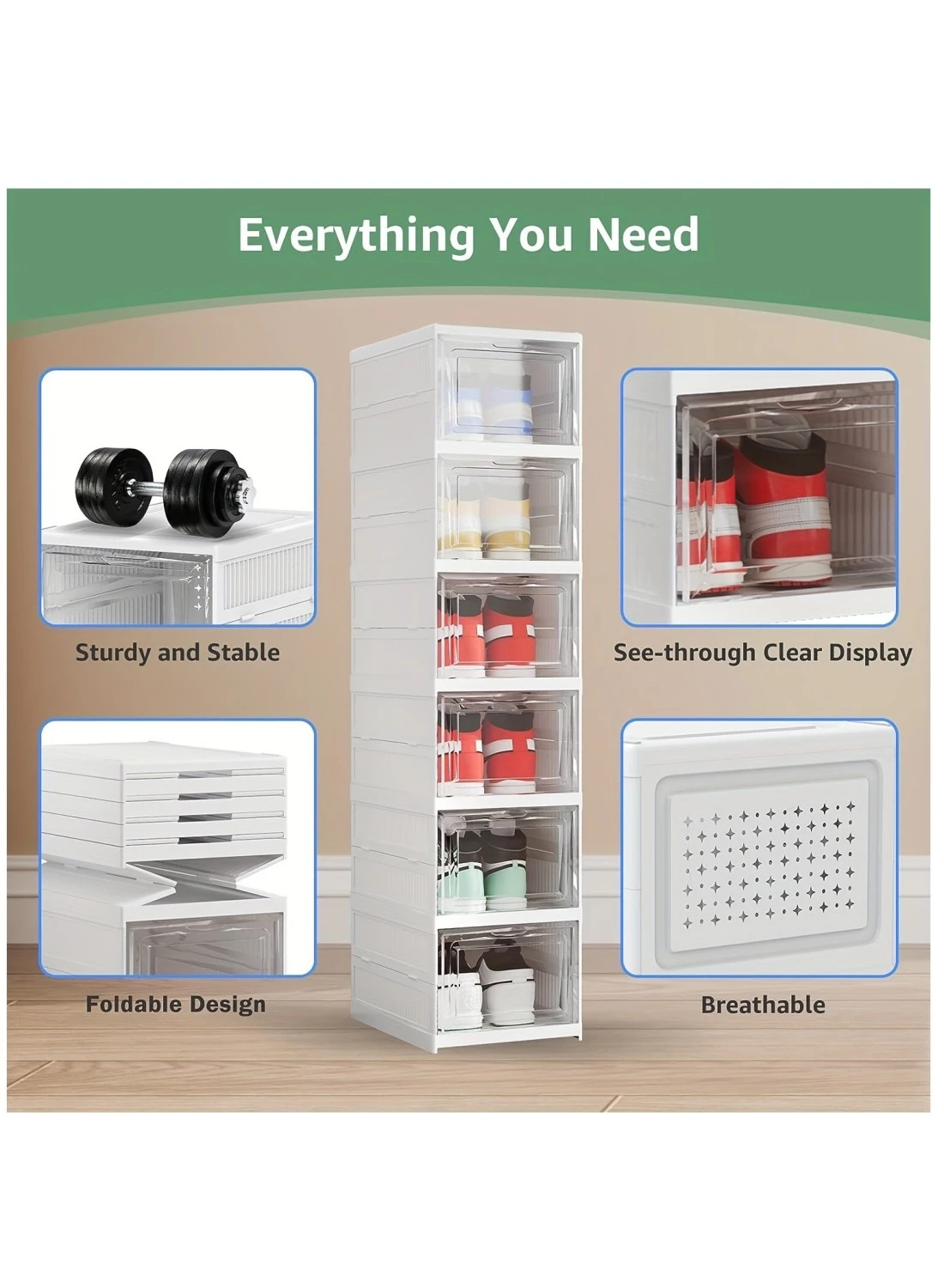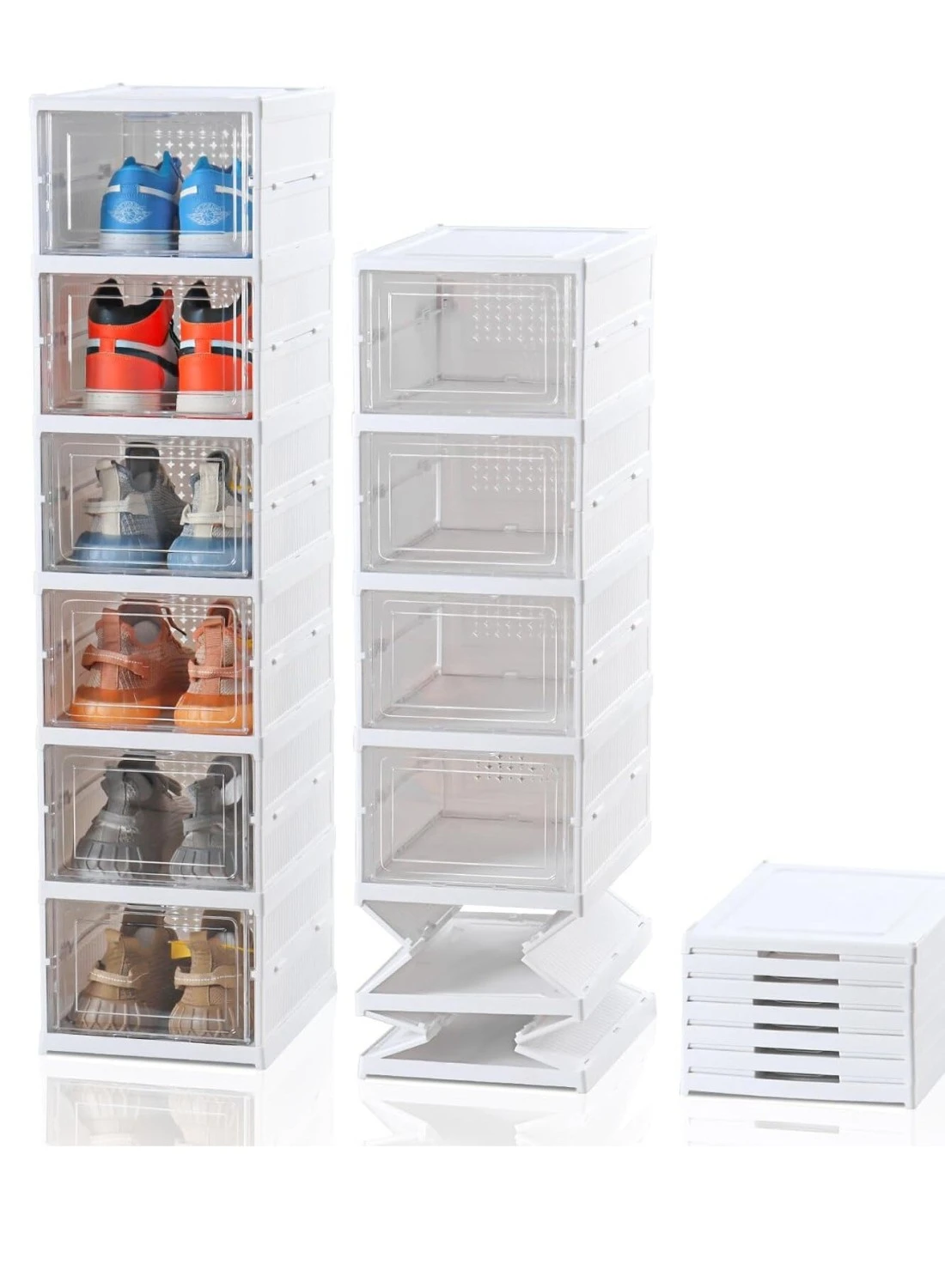 - Innovative Foldable Design: Compact 6-compartment rack for up to 6 pairs of shoes, with customizable folding sections.