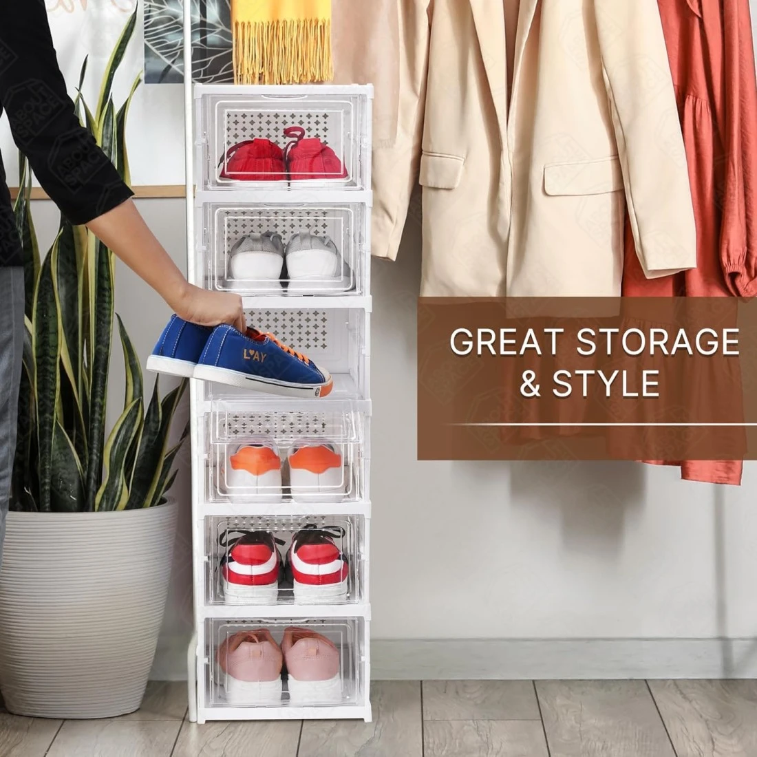 - Transparent and Durable: Made from premium lightweight plastic in white and transparent colors, with built-in ventilation to prevent moisture and odors.