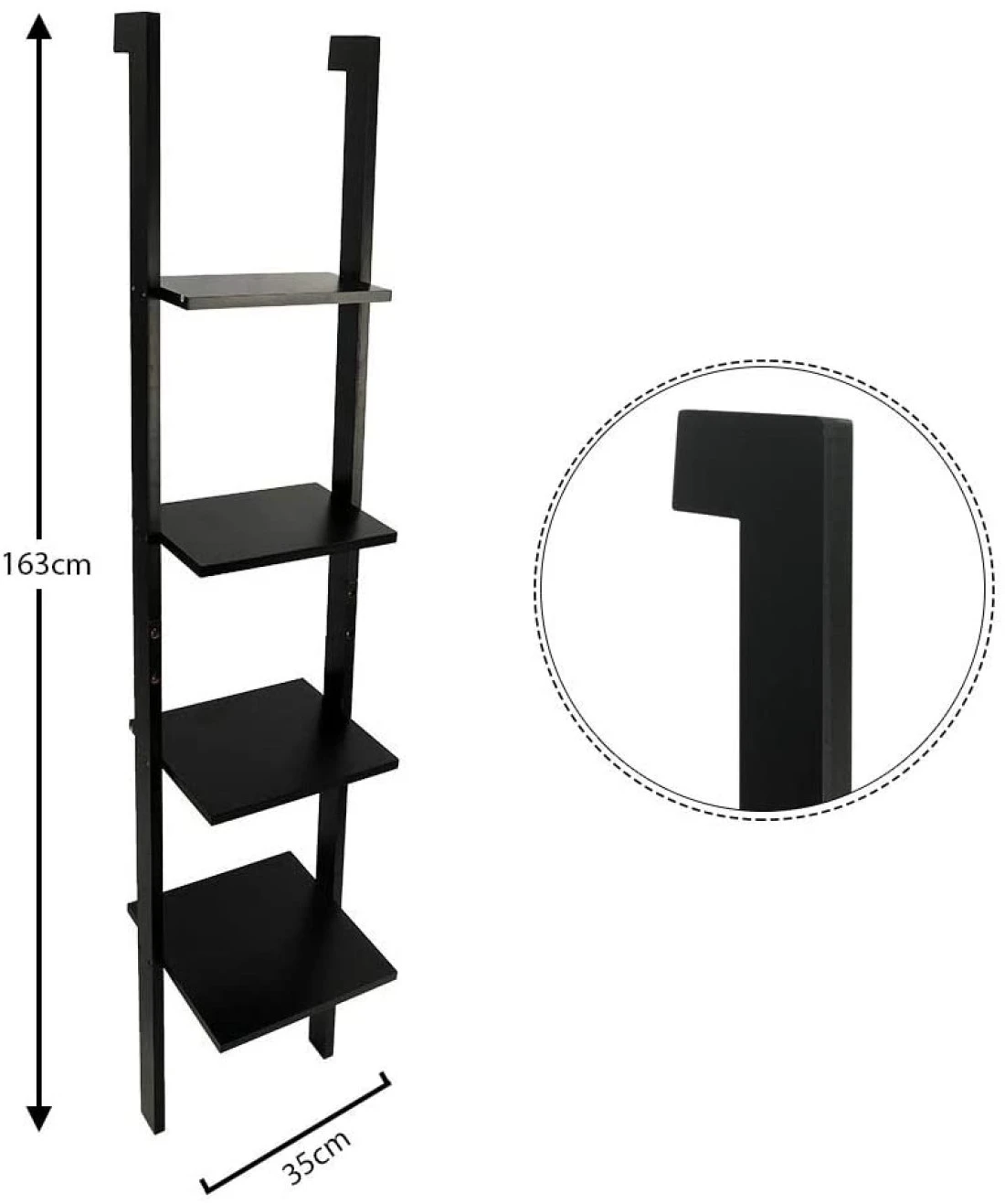 Dimensions: Length – 35cm, Height – 163cm. The 4 shelves are suitable for flowers, photos, etc. The natural material looks great in every room.