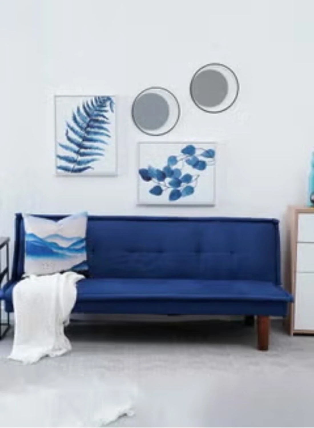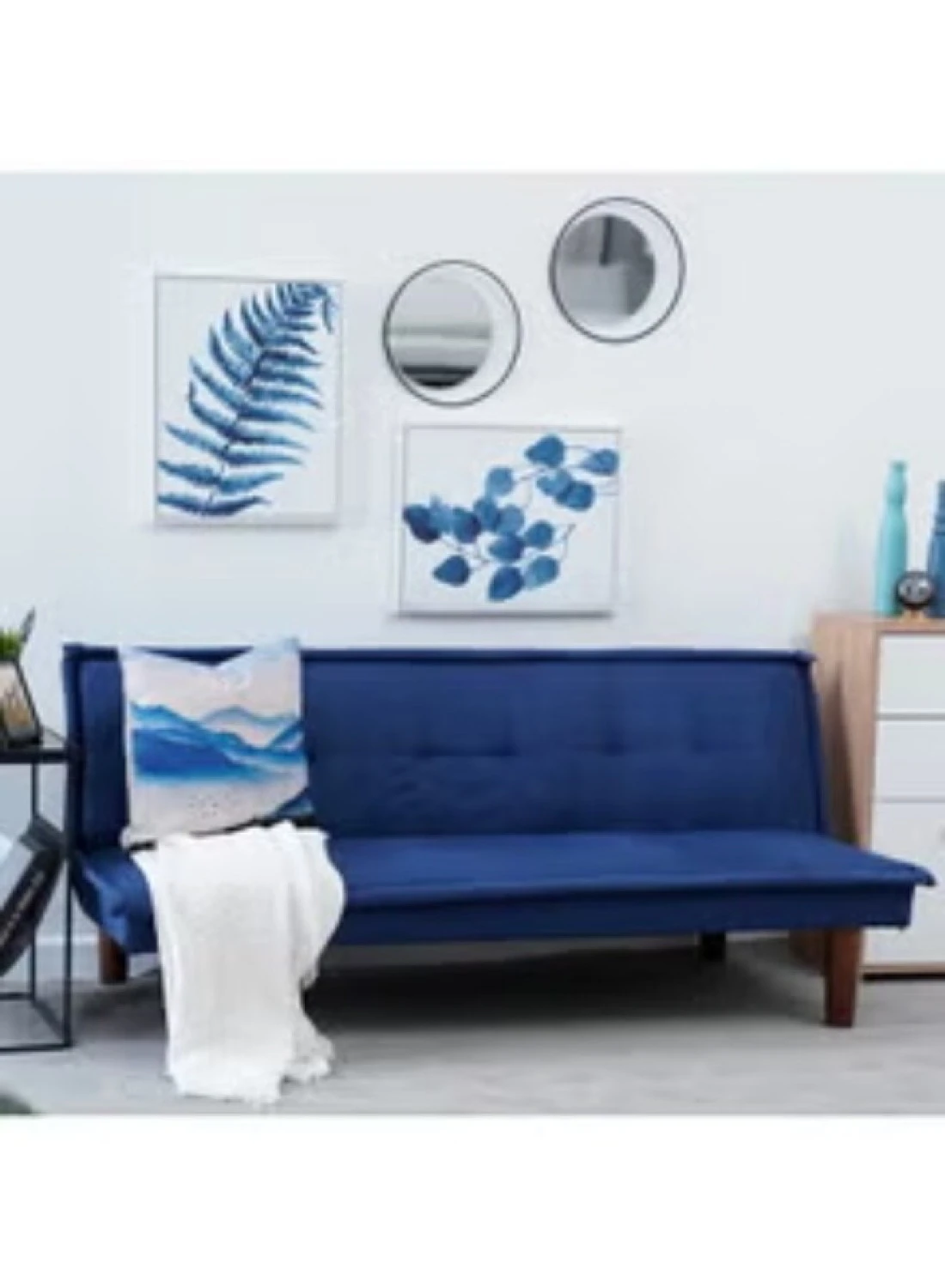 2 Seater Caldo Sofa Bed Foam Filling Fabric Material Blue 160x87x69cm
