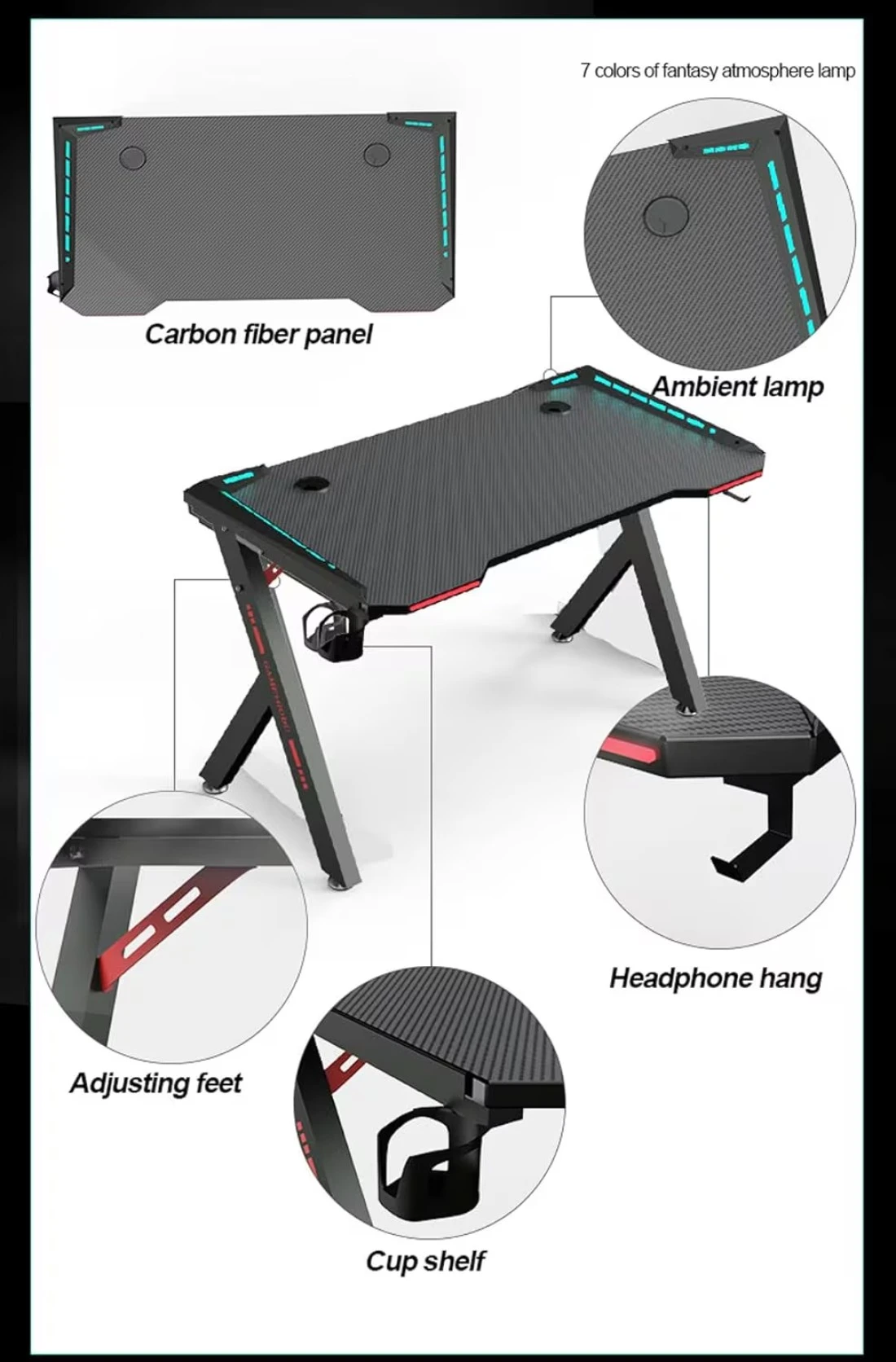 MAF K-151-120cm Gaming Table – Carbon Fiber Surface, RGB LED Lights, and Sturdy Steel Frame – Perfect for Gaming