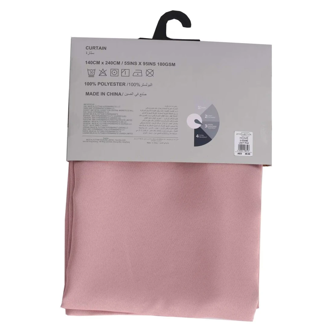La Collection 180GSM Polyester Black Out Curtain Light Pink 140x240cm