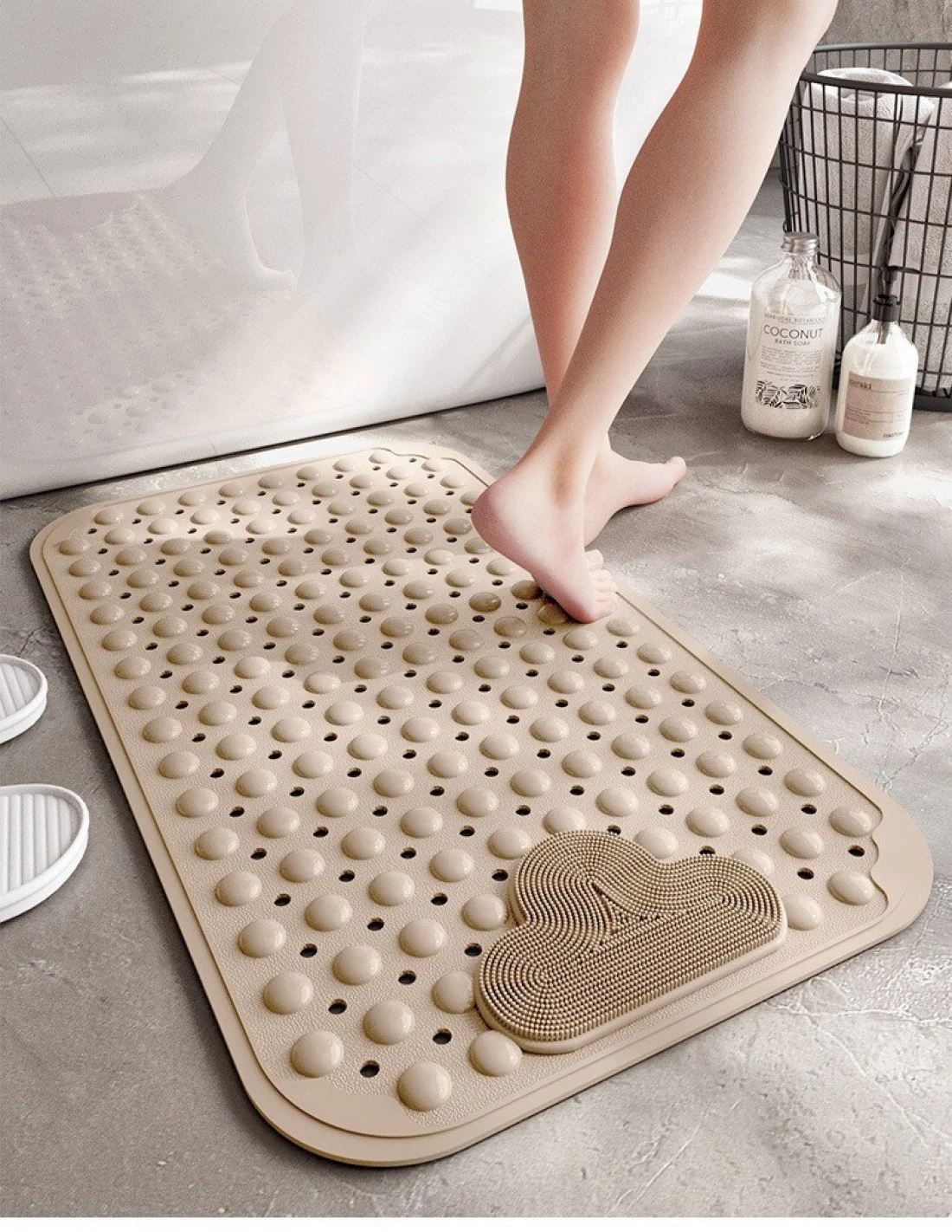 Anti-Slip Massage Bathroom Bath Tub Mats with Suction Cup and Drain Hole Quick Drying Shower Floor Mat (40×70CM)