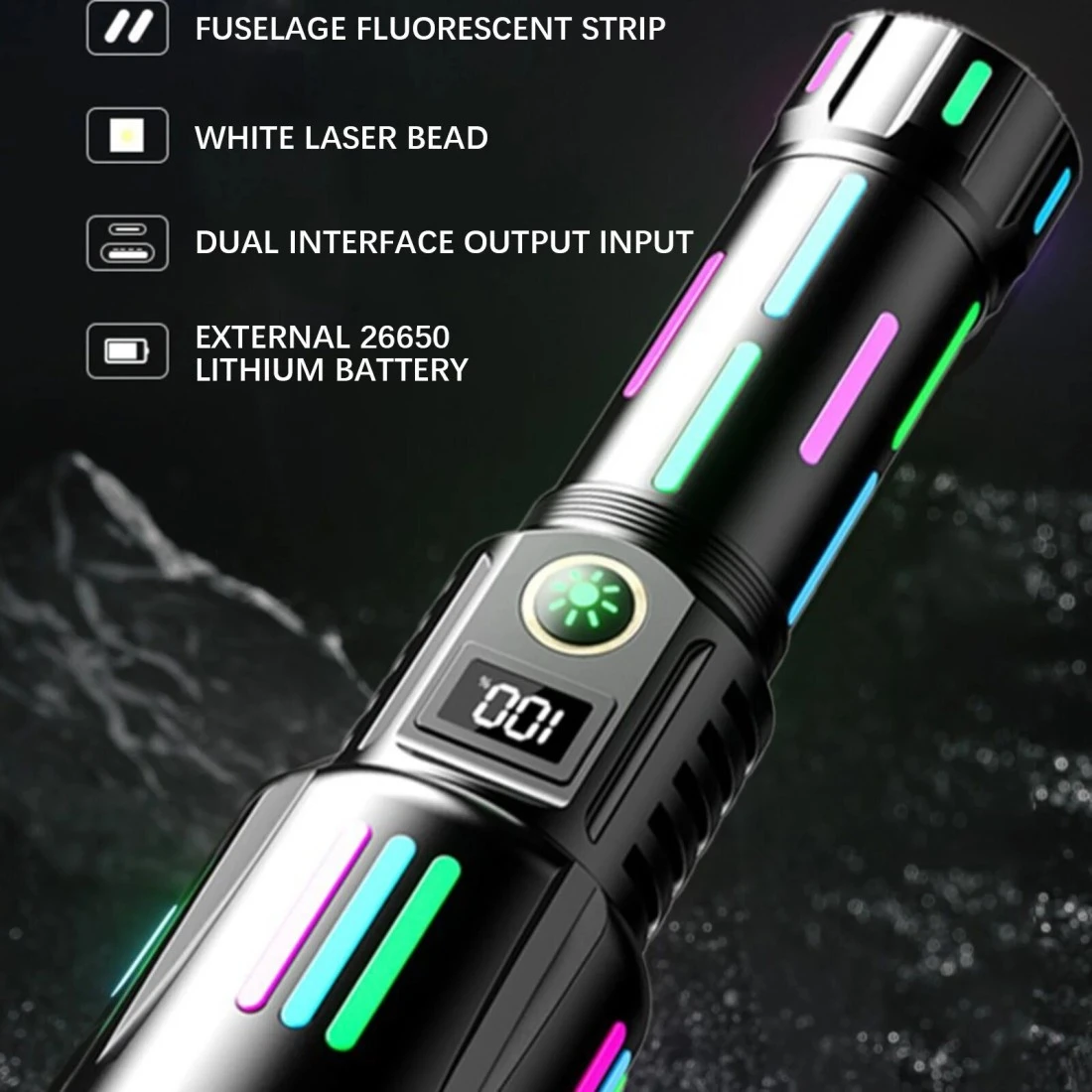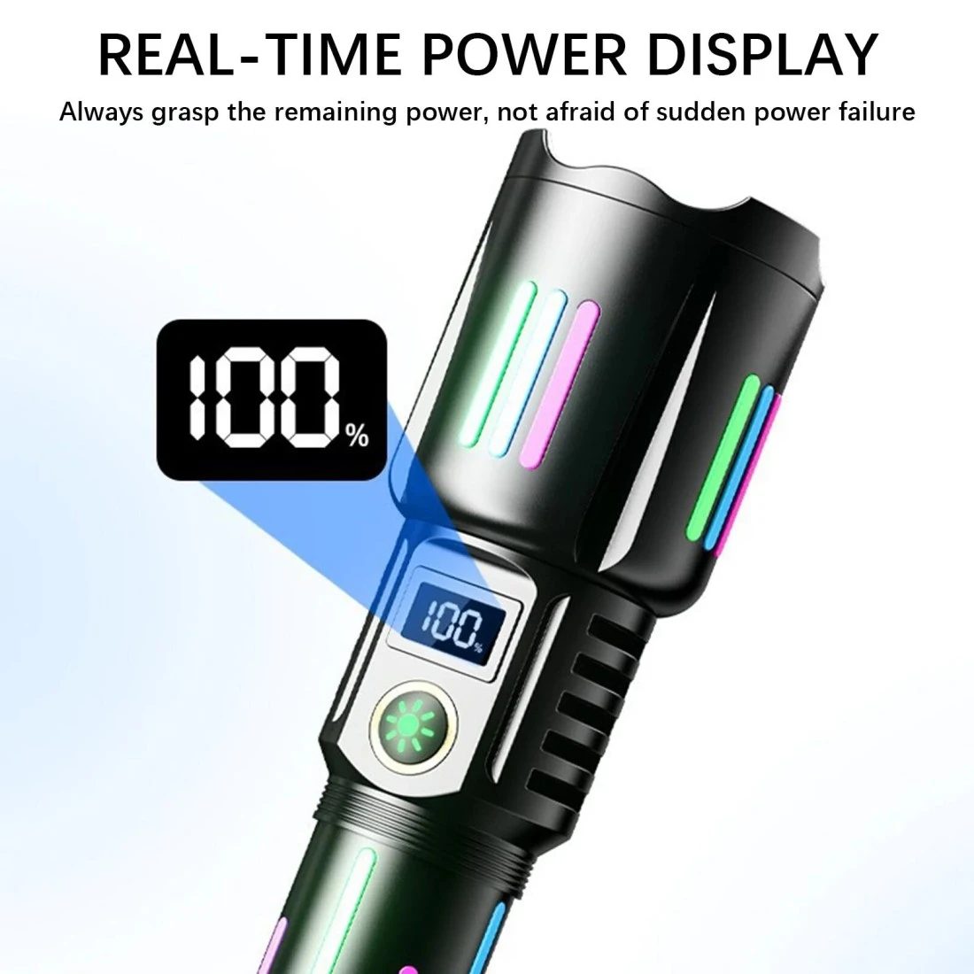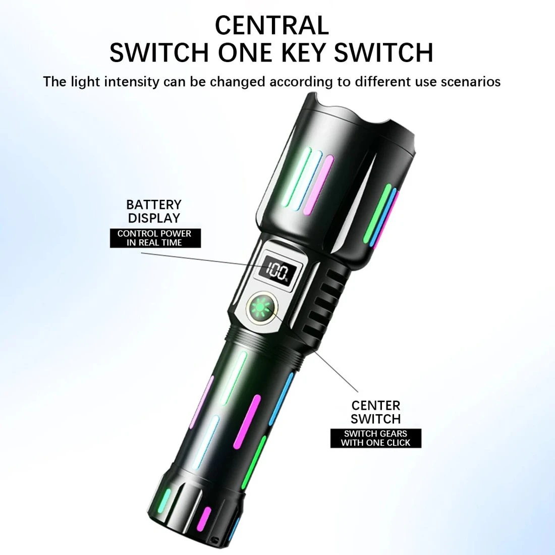 High-Power LED Flashlight – USB Rechargeable Tactical Lantern with Telescopic Zoom, Long-Distance Lighting, Waterproof Outdoor Torch for Camping, Hiking,