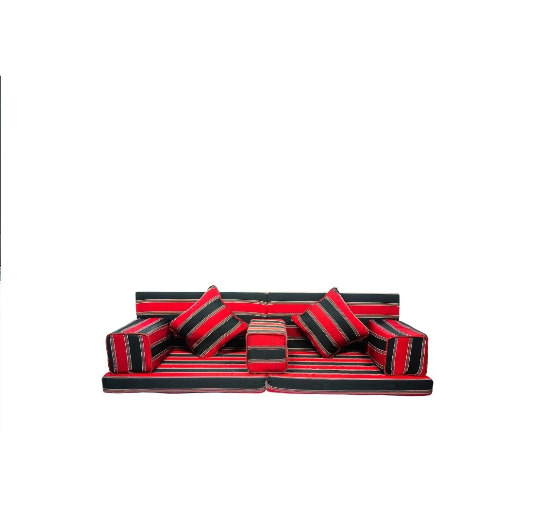 Comfy 7pcs Folding Arabic Majlis sofa set - Red/Black Stripe