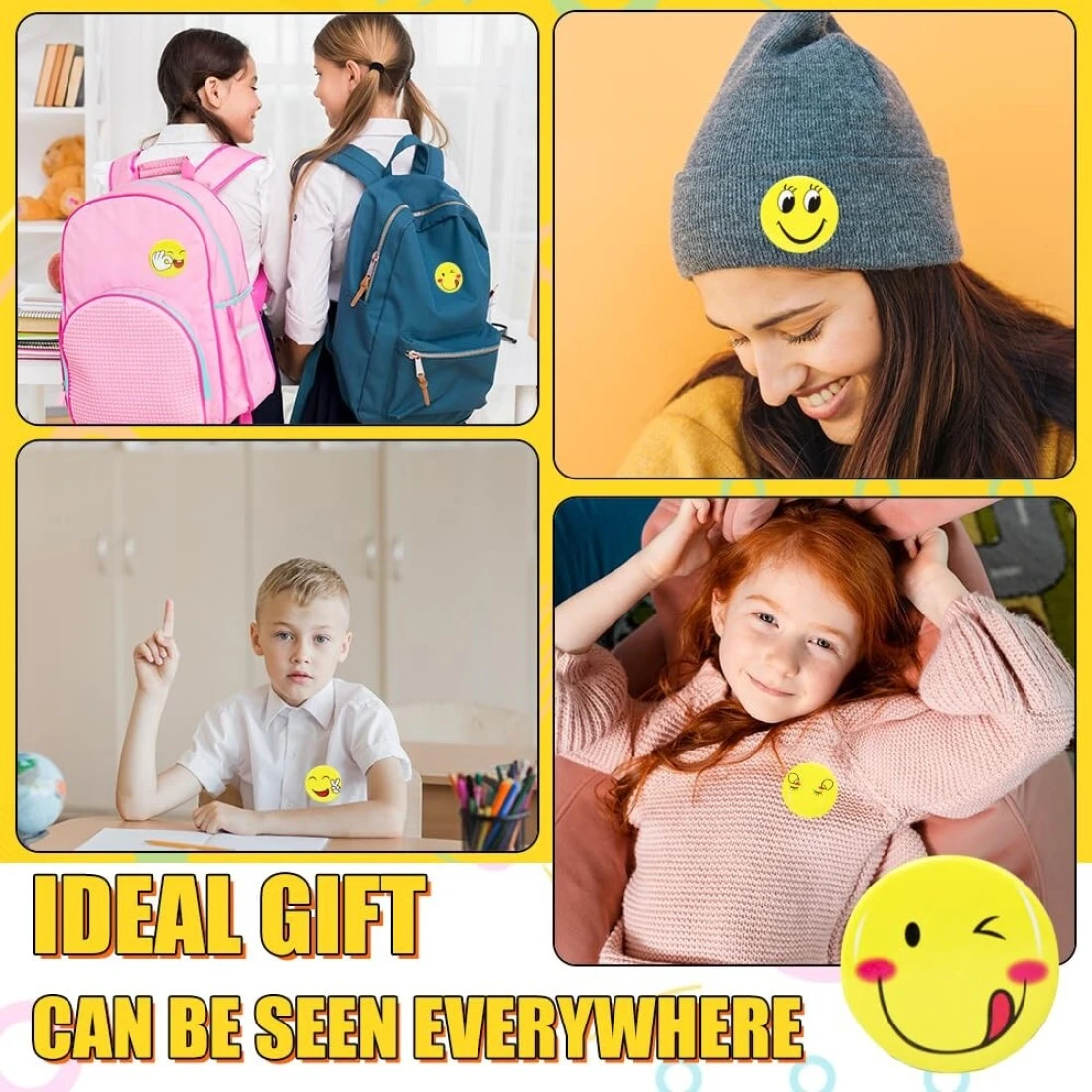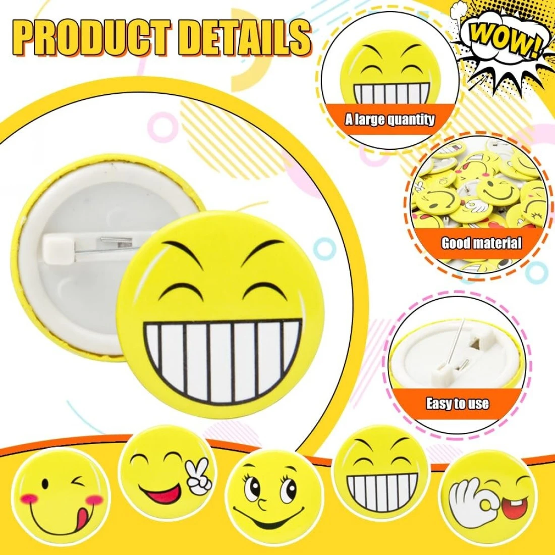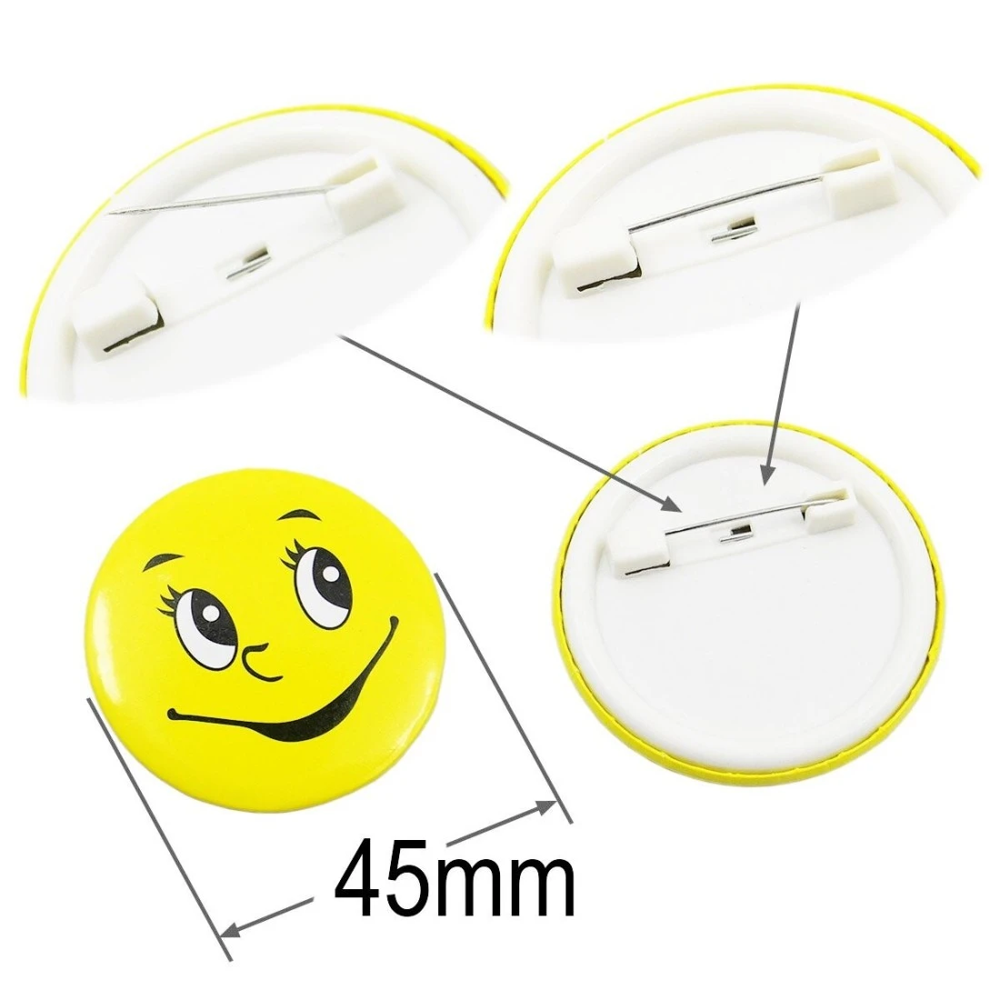 Pack of 30 Smiley Face Badges with Metal Pin, 45mm Emoji Pins for Awards, Decorations, Party Favours, Crafts, and Gifts