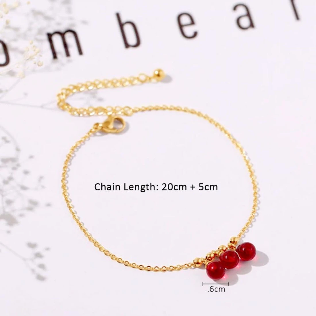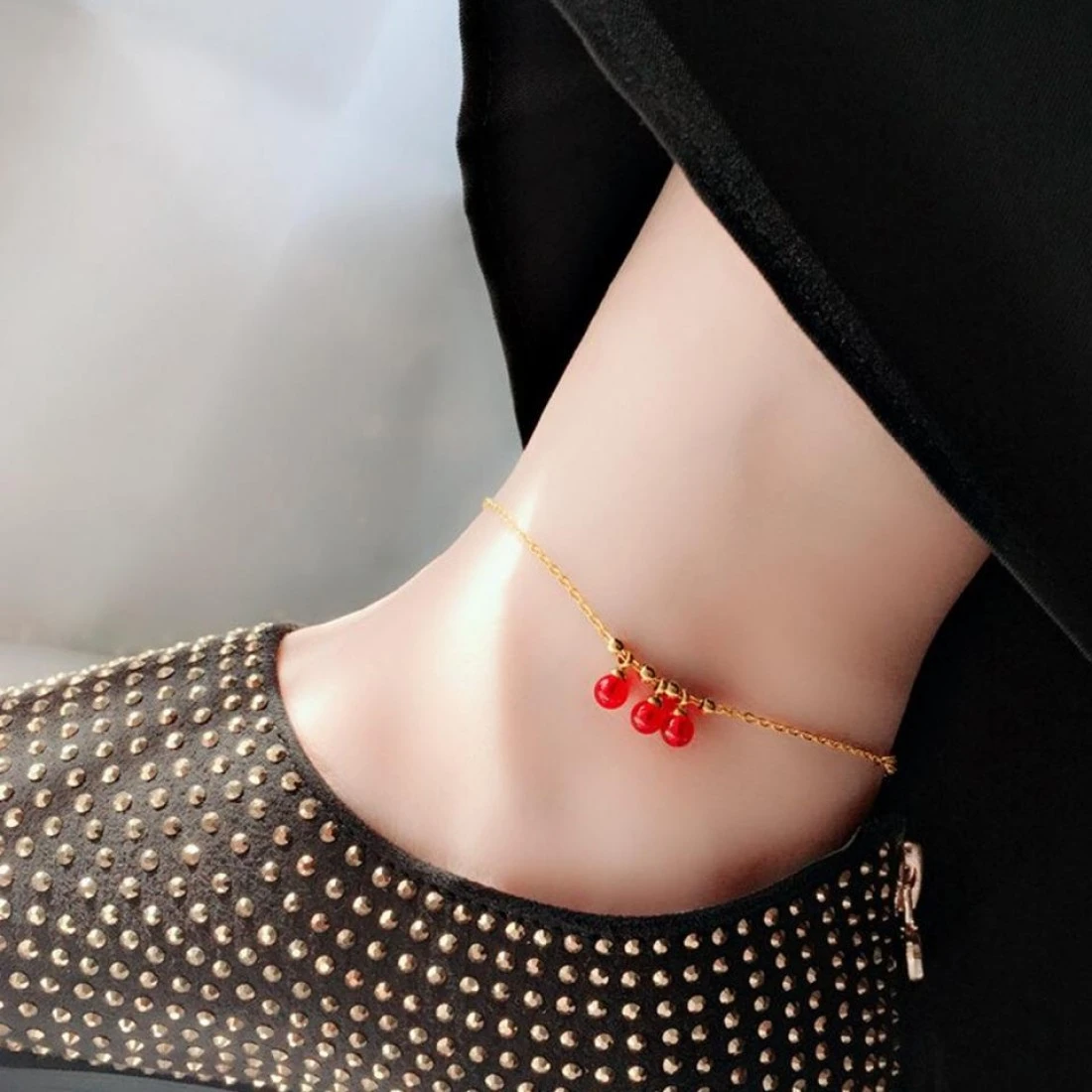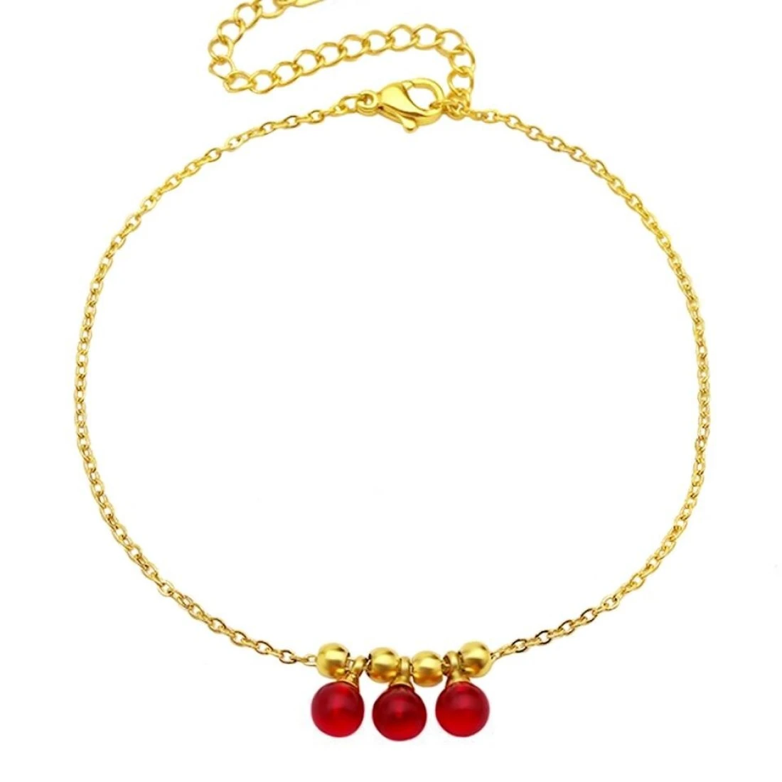 Aiwanto Beautiful Anklet for Ladies Ankle Chain Gold With Red Pearl Bracelet