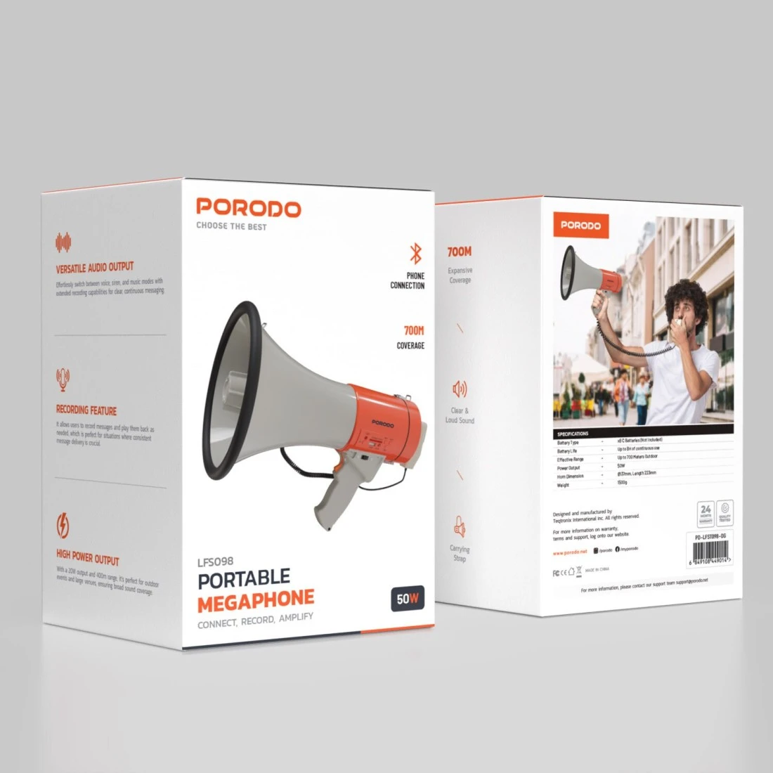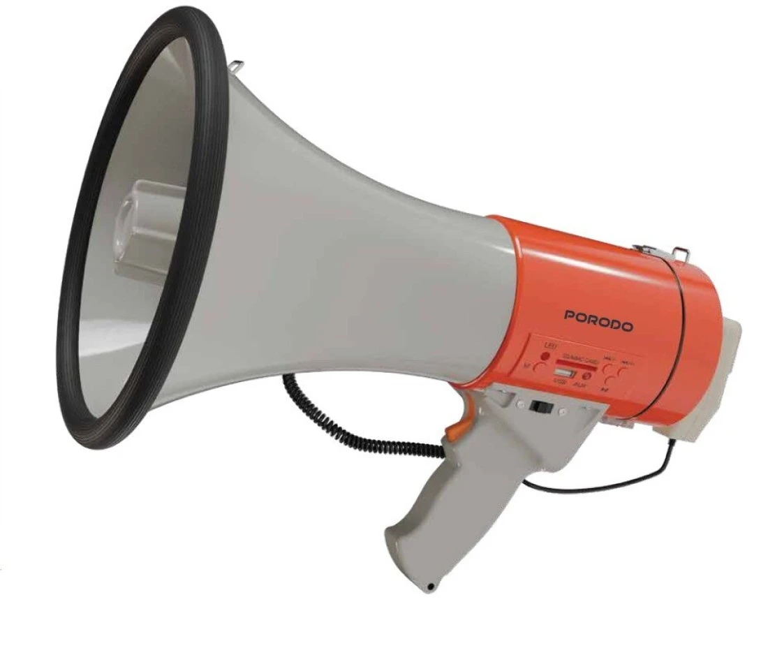 Porodo Portable Bluetooth Speaker & Recorder Megaphone, 700m Effective Range, Up to 8 hours Battery Life, Powerful 50W Output, Multi-Mode Functionality, Recorder and Playback Messenger - Orange